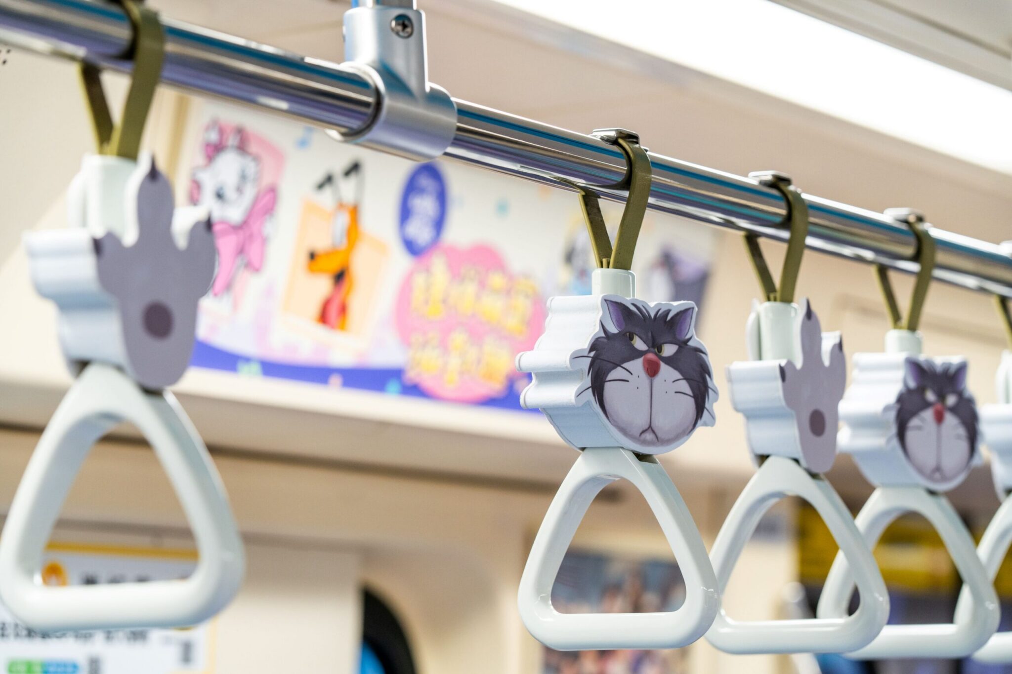 其中兩節車廂的手拉環還妝點成可愛「萌掌」造型,貓掌、狗掌陪你快樂搭車。下載「台北捷運Go」App點選「U形動態資訊」,掌握彩繪列車動態!