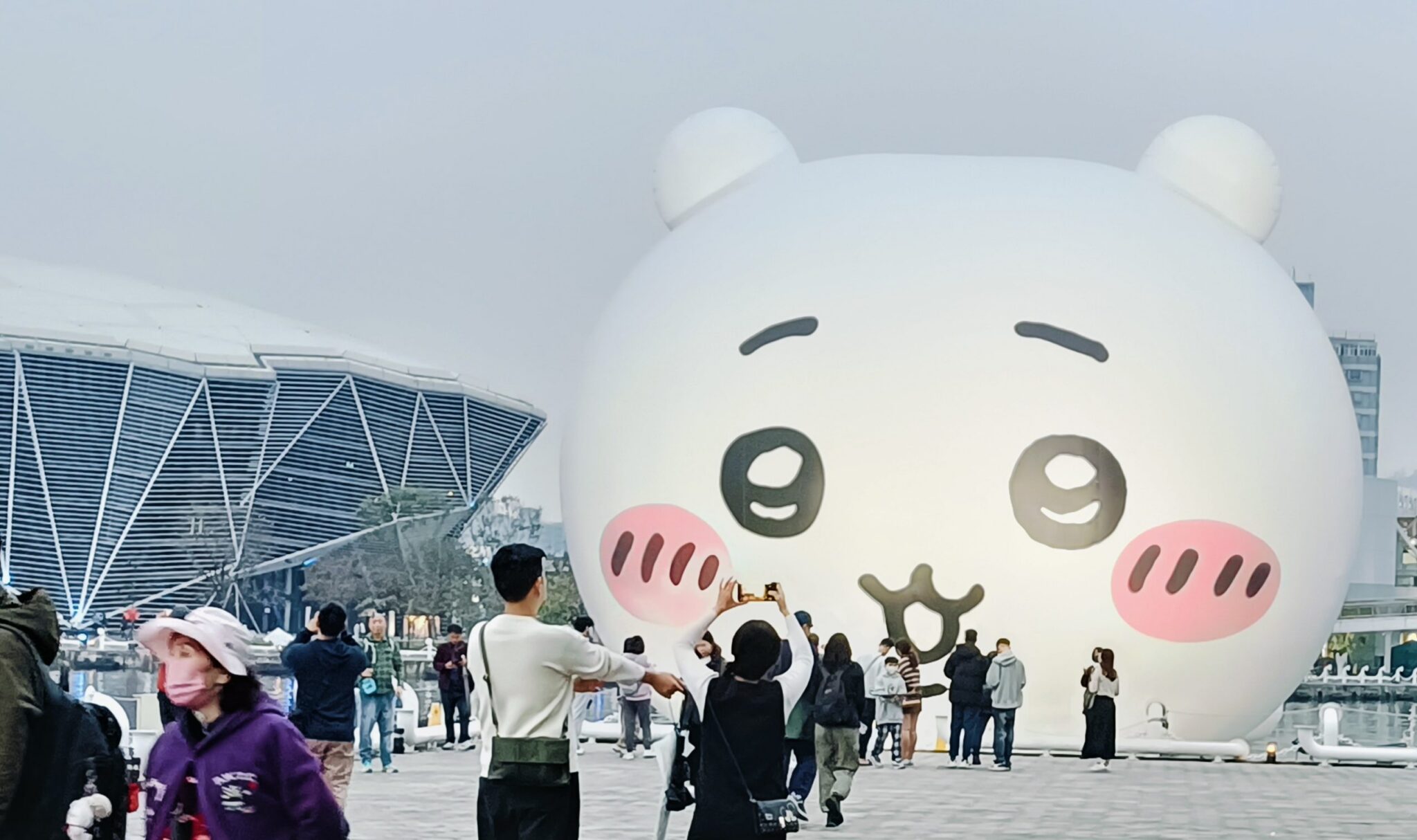 「吉刻就圓」活動呼應高雄冬日遊樂園「吉伊卡哇(Chiikawa)」主題,以紅白海灘球點綴水域,打造如夢似幻的漂浮湯圓海景,為海港增添不少童趣與歡樂氛圍,無論曬娃打卡或親子共遊都是最佳首選。