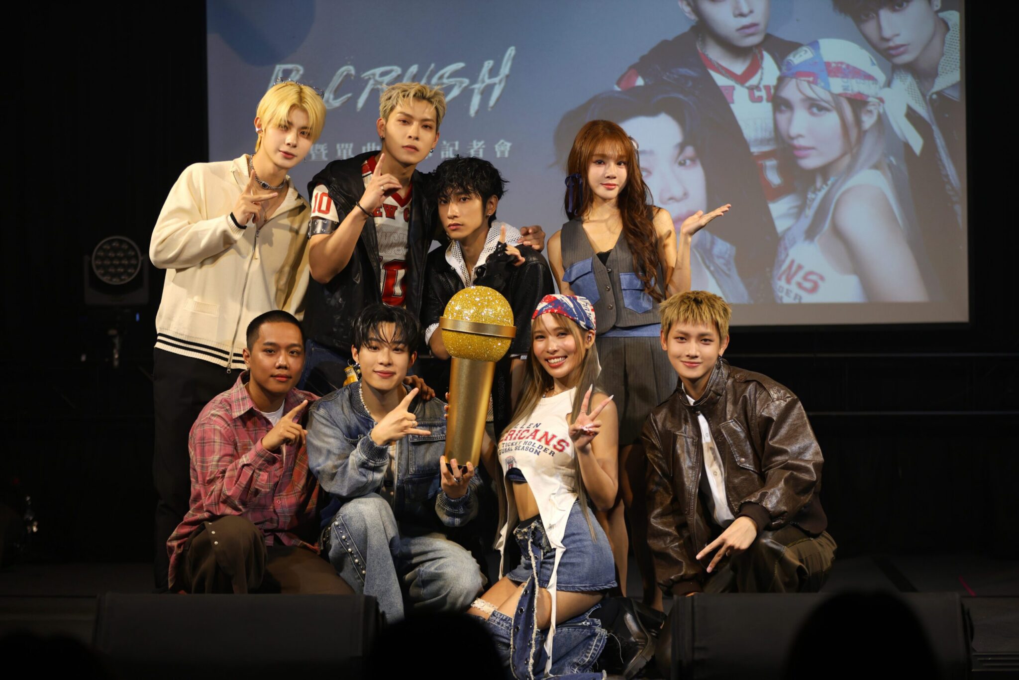 記者會現場也迎來許多昔日戰友應援,包括ARKis東翰、李定,《大學聲》冠軍小歐,以及G.O.F的Dolly,他們更驚喜送上象徵榮耀的「金麥克風」,並提到此象徵:「這支金色麥克風代表舞台上的榮耀,希望你們能唱出更多動人的作品,用歌聲征服更多舞台。未來不只是『不小心製造』,而是『故意大爆紅』。」不僅如此,B CRUSH更收到來自前輩們的影像祝福,包含陳漢典、坤達、建志、Sandra、左光平…等,透過聲音及影像送上滿滿的打氣與鼓勵。