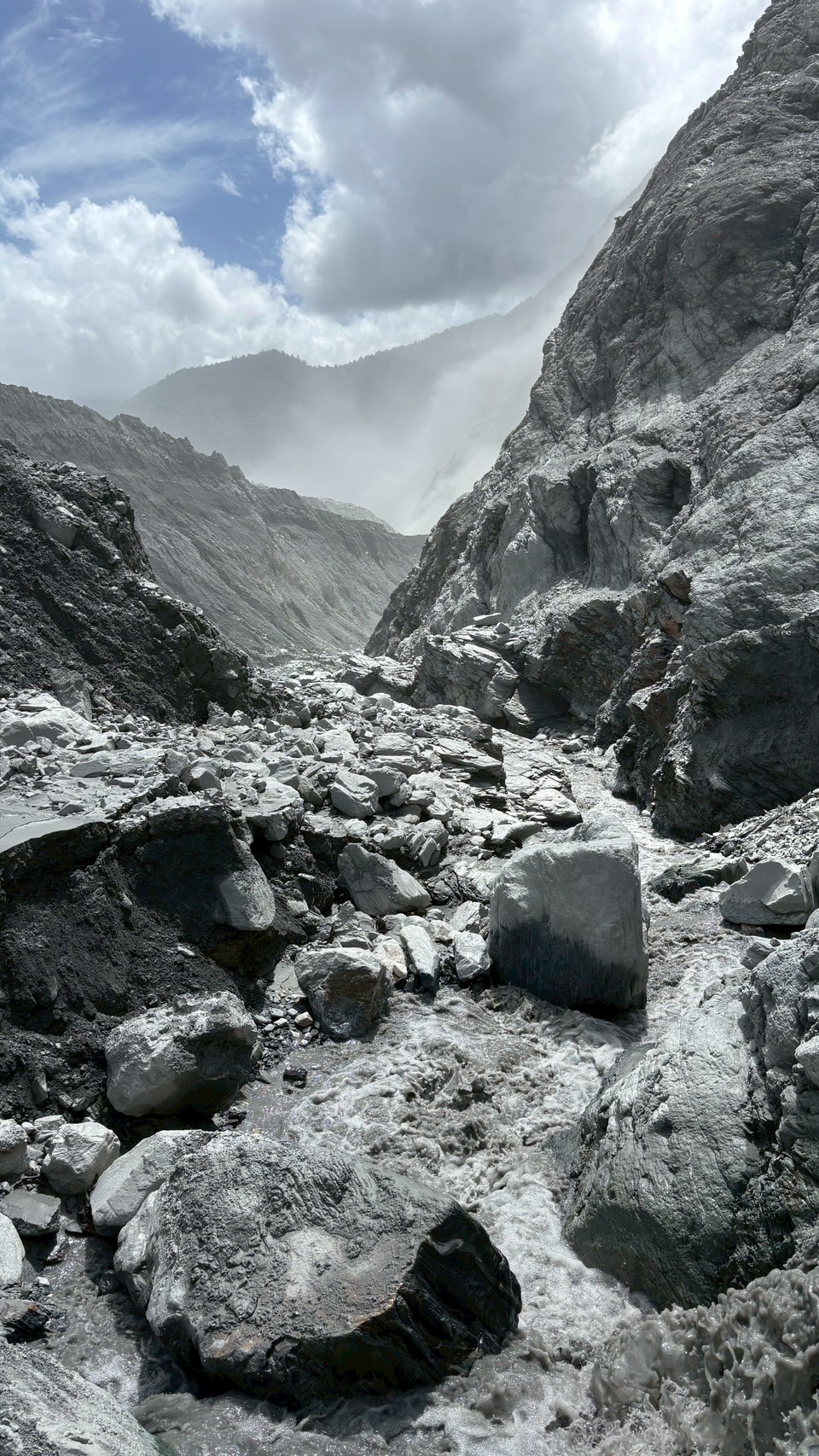 萬榮林道特遣隊於10月2日出發,由張光承與花蓮分署萬榮工作站資深技術士張森領軍,成員包括布農族高山協作員高健翔及多位生態與登山專家。隊伍攜帶繩索、草刀與十字鎬等專業裝備,沿途克服崩塌與斷崖,經三天兩夜跋涉後抵達馬太鞍溪主匯流口,成功觀測堰塞湖壩體與溢流口。實測發現,溢流後短短兩週內河道已被沖刷加深逾百公尺,地形變化劇烈,溪水侵蝕力驚人,顯示該區仍持續快速演變。