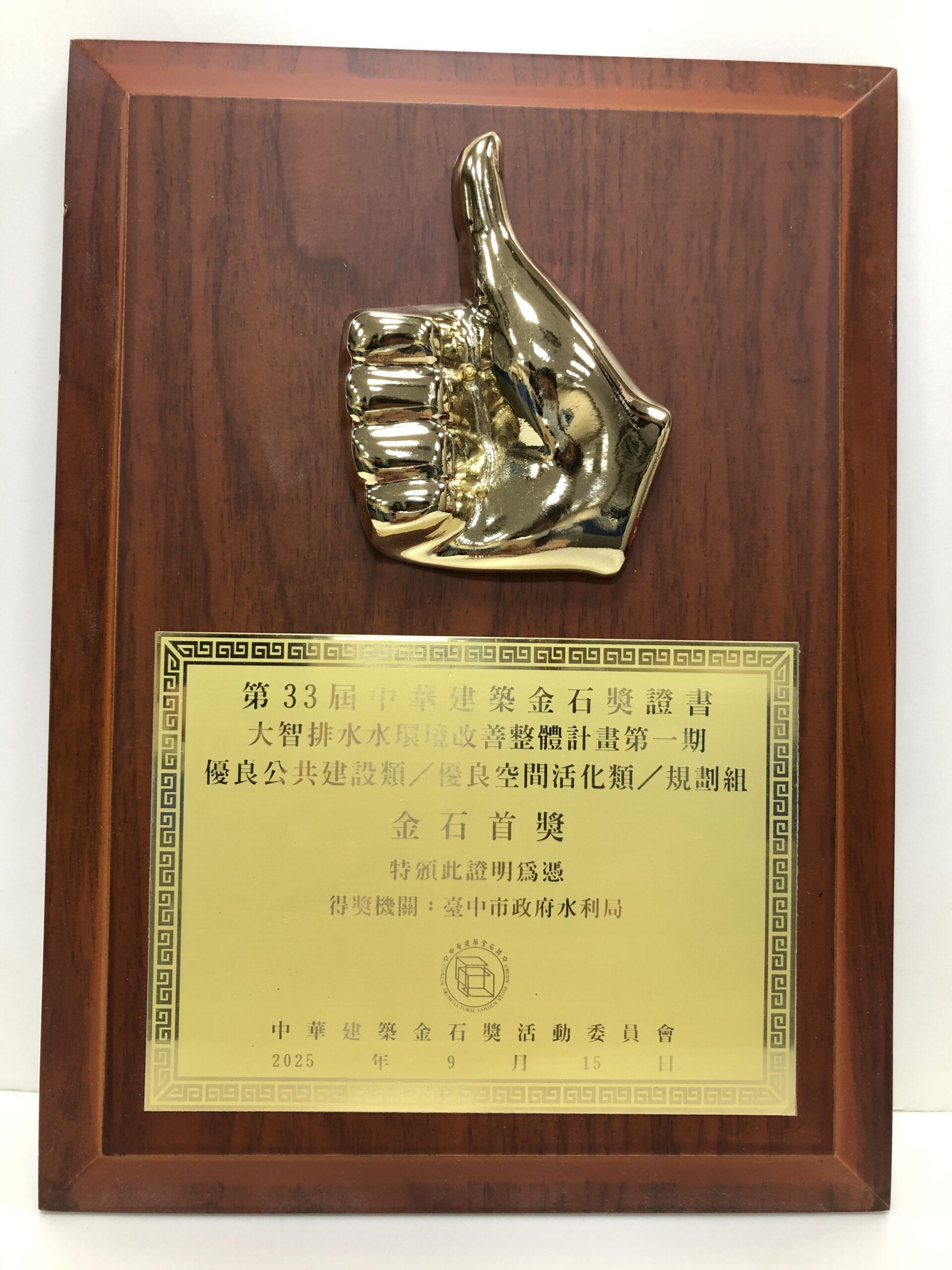 「中華建築金石獎」以台灣品牌自許,長期以來秉持綠色永續經營理念,打造優質人性化的居住環境。台中市水利局今年以「大智排水水環境改善整體計畫第一期」脫穎而出,榮獲第33屆中華建築優良公共工程/優良空間活化類-規劃組「金石首獎」殊榮。此計畫同時也獲得「2024第十二屆台灣景觀大獎」環境規劃類優質獎及「2025國家卓越建設獎」最佳規劃設計類-優質獎,充分展現水利局在水環境營造上的精進與累積成果。