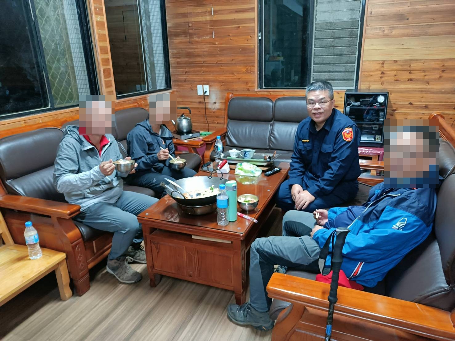 獲救3人雖疲憊不堪,所幸意識清醒,警方協助三人安全下山返抵明池派出所,立刻提供飲水與熱湯麵補充體力,並由大同消防分隊在凌晨4時25分接手,將受傷的陳男送醫治療。