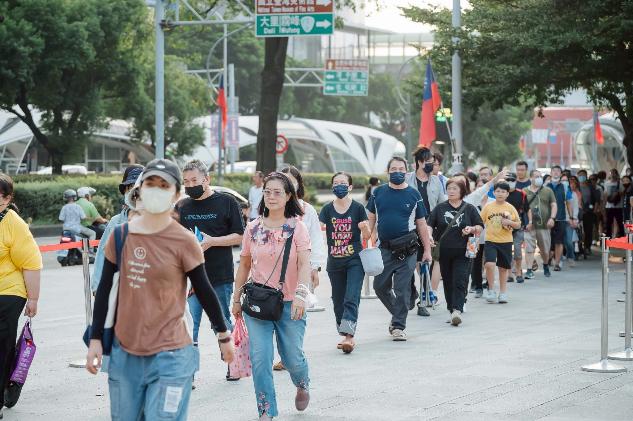 今年國慶升旗同樣在市府廣場舉行,許多民眾起大早攜家帶眷來到會場,手拿著小國旗揮舞,將府前廣場擠得水洩不通。今年市府特別準備實用紀念品「三用照明檯燈」,6時30分開始發放,排隊人龍一路從市府廣場排到市政公園,5000份不到一小時一掃而空。