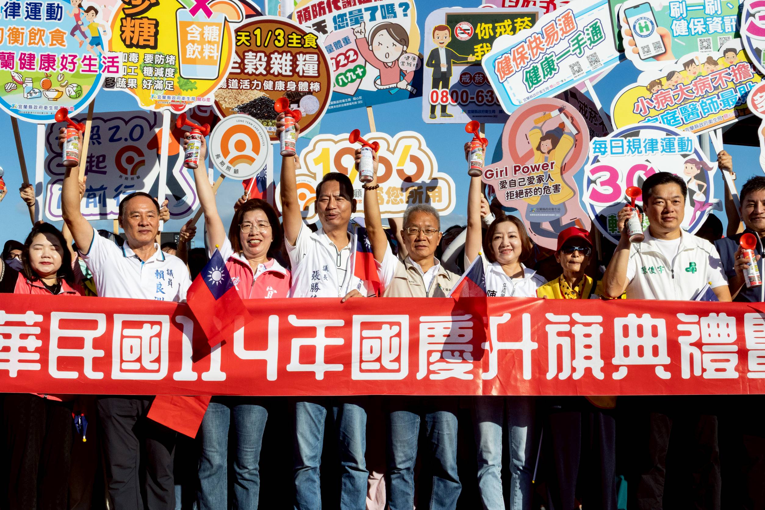 宜蘭縣政府10日上午6時30分,在宜蘭運動公園田徑場舉辦「慶祝中華民國114年國慶升旗典禮暨全民活力健行活動」,縣民與到訪宜蘭遊客,一同慶祝中華民國生日快樂,同時一起參與活力操及為健康而走健行活動,建構活力健康的樂活蘭陽。
