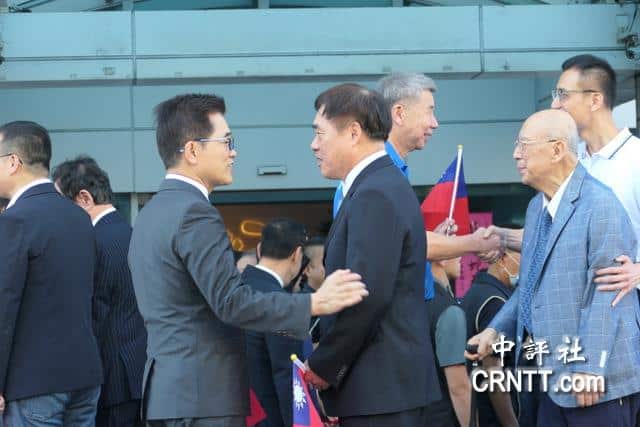 國民黨主席候選人蔡志弘(左)與郝龍斌(右)10日早上出席國民黨舉辦的雙十升旗典禮。(中評社)