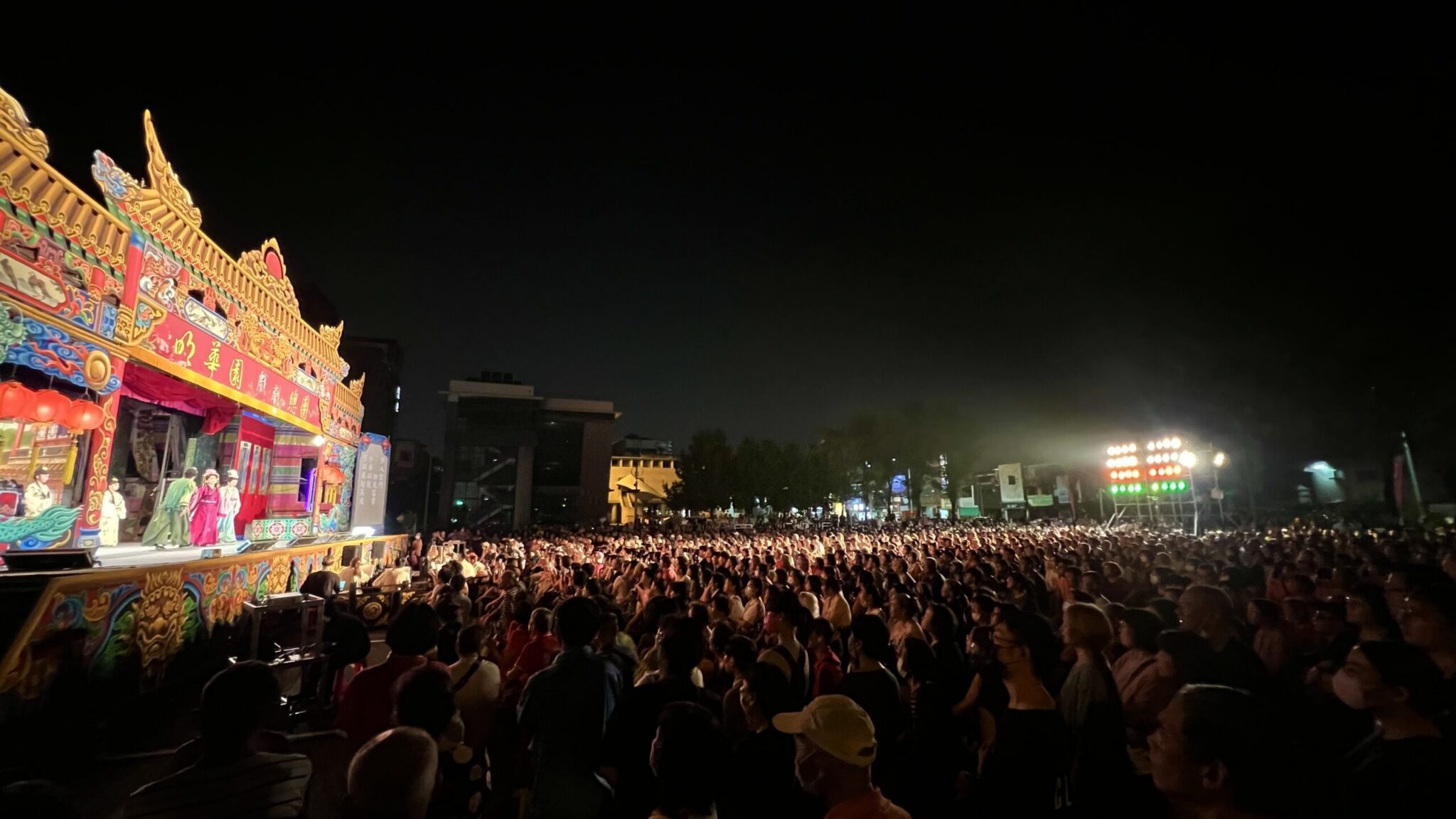 台中市政府文化局與財團法人台中市文教基金會共同主辦「2025台中市傳統藝術巡演」,昨(10)晚間於台中市立圖書館大里分館旁停車場舉辦,由明華園戲劇總團演出《八仙系列之曹國舅》,現場湧入近5,000名觀眾齊聚觀賞,共同歡度雙十佳節。