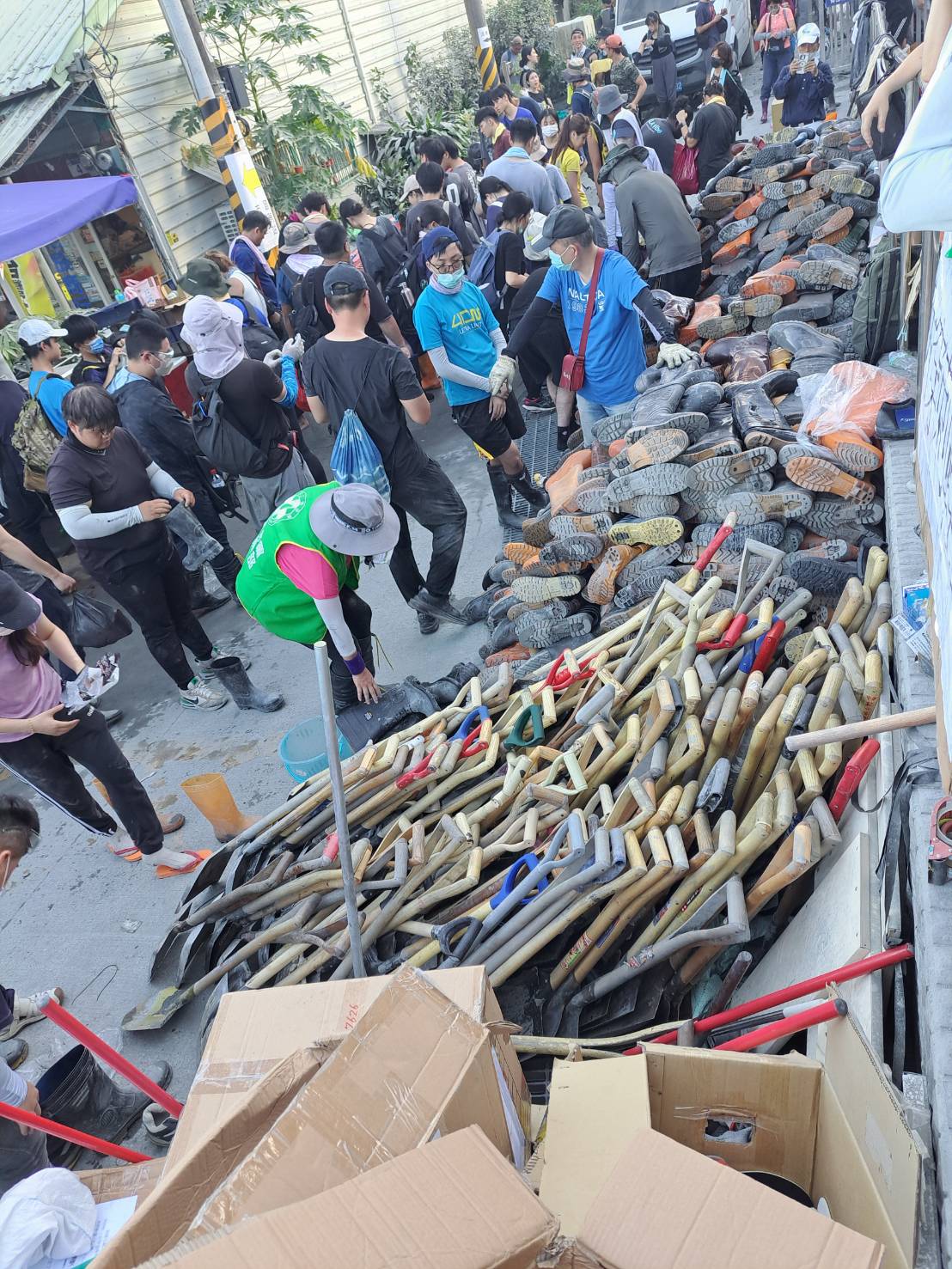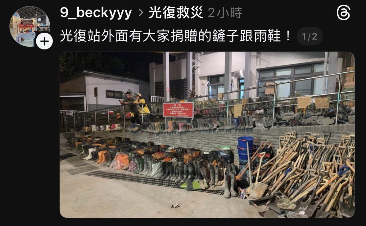 初步估計已有 35.7 萬人次超人因來到光復,這幾天超人們呼籲把雨鞋帶回,但仍有數量可觀的雨鞋、鏟子等工具,由啄木鳥的窩是光復的二手公益商店,由啄木鳥發起,義不容辭的舉手,做為善後的主責在地組織,提出發想,除了直接再利用外,可以做為地方產業,融入藝術、療癒、環境維護等議題,在重建之路上,透過雨鞋與鏟子,繼續與超人們延伸互助關懷的情誼。
