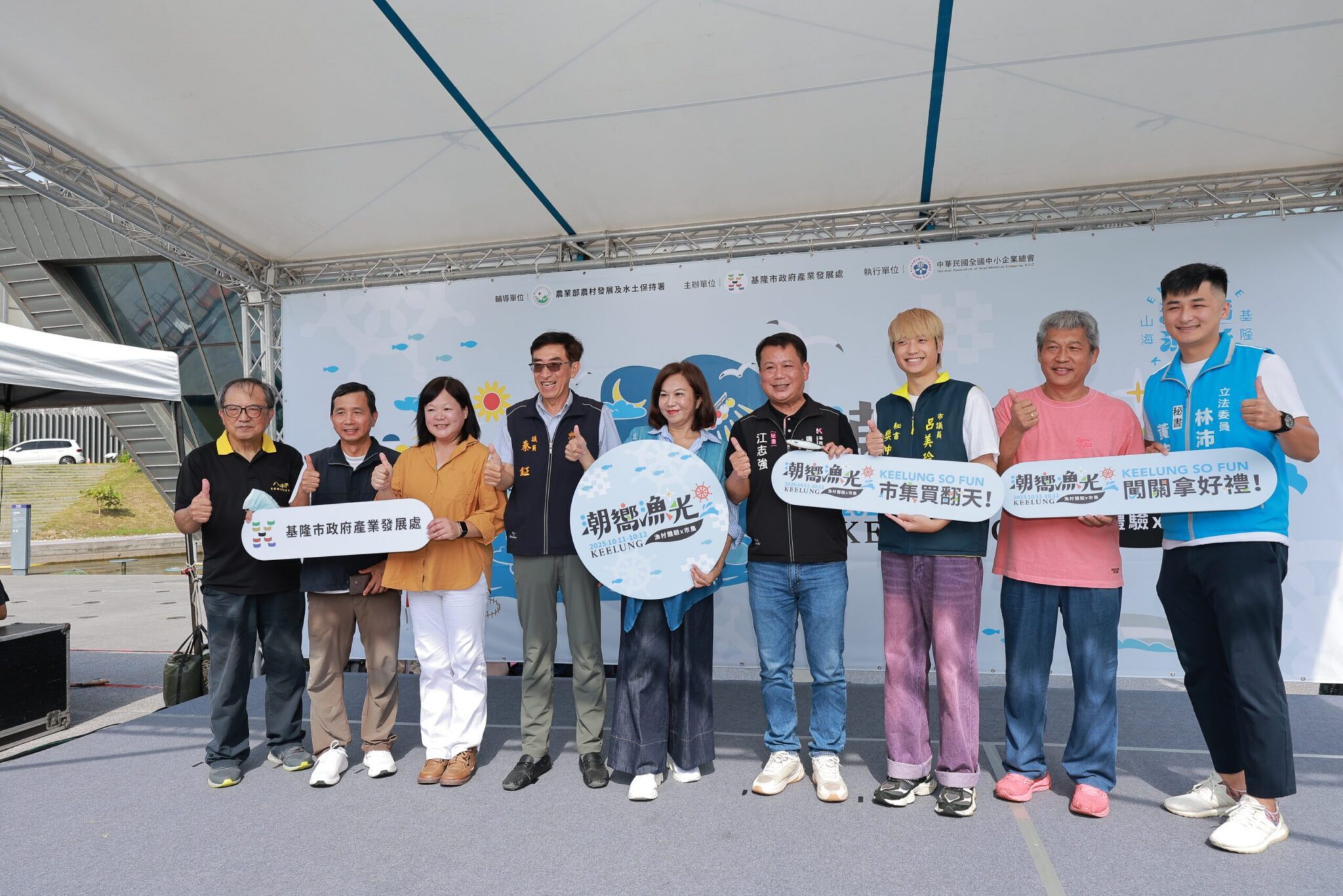 由農村水保署輔導、基隆市政府主辦的「基隆潮嚮.漁光市集」今(11)日於國立海洋科技博物館主題館廣場熱鬧登場,活動為期兩天,將持續至10月12日止。副市長邱佩琳到場逐一走訪攤位,與在地商家、青創團隊互動,為他們加油打氣。她表示,市府致力推動永續文化與漁村產業再生,希望透過市集活動,讓更多人走進八斗子,體驗山海共生的生活美學與海派文化風情。