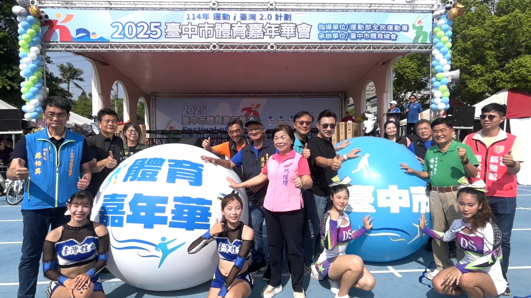 台中市政府運動局長游志祥代表市長盧秀燕出席開幕典禮,感謝台中市議會議長暨台中市體育總會理事長張清照、市議員暨體育總會秘書長蘇柏興的大力支持,讓全民運動持續深入社區、走進市民生活。啟動儀式以「大球啟動」揭開序幕,由各單項委員會代表齊力滾動大球,象徵團結一心、全民齊心推動體育,也為即將出征全國運動會的台中代表隊注入滿滿士氣。