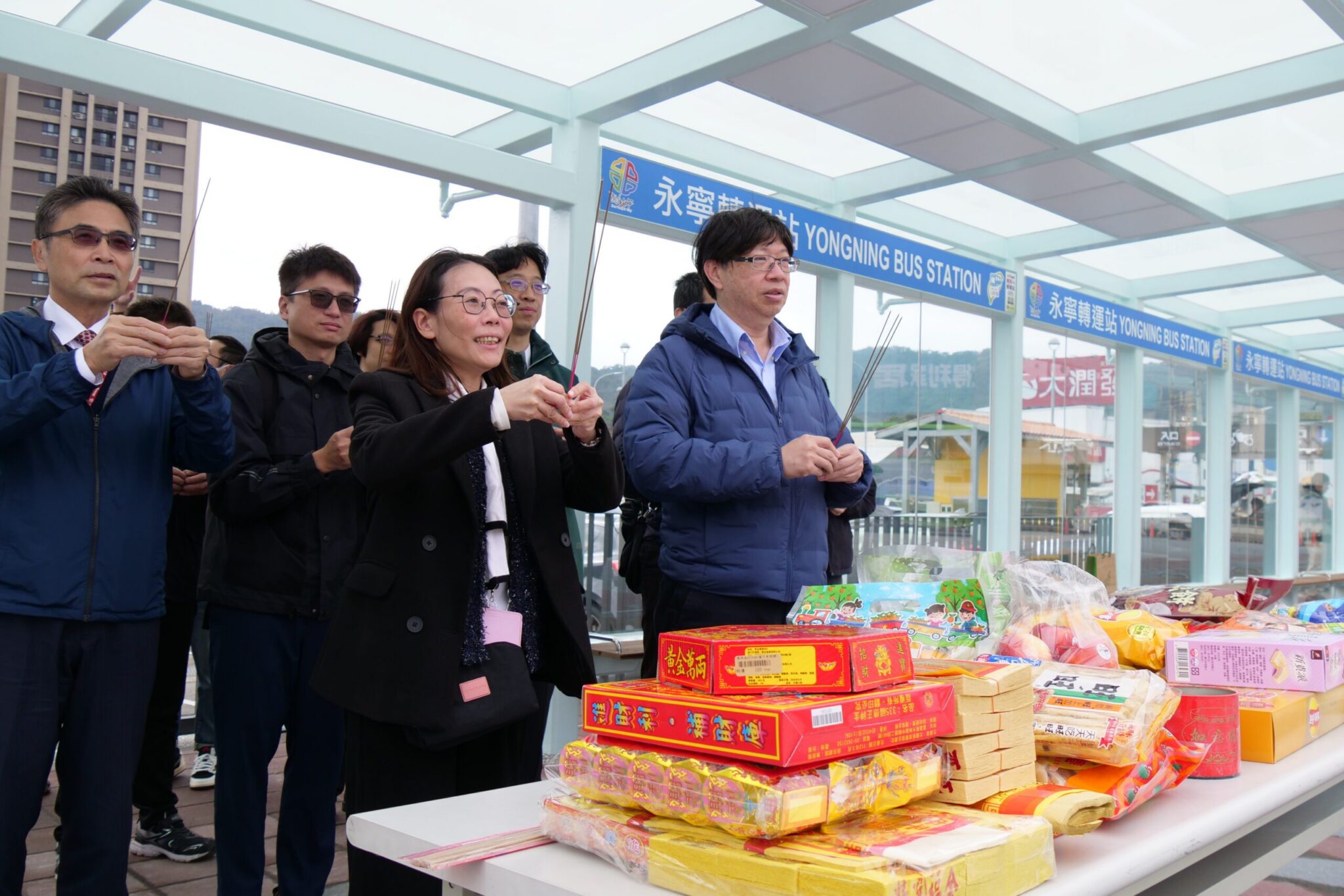 新北土城區永寧轉運站今(14日)舉行完工祈福儀式,交通局副局長林麗珠表示,永寧轉運站設有5個月台及長廊式候車亭,納入10條桃園公車路線,每日計有328班次停靠,將於下周一(17日)中午12時正式啟動公共運輸服務。