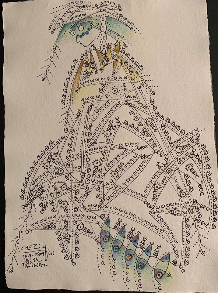 新竹藝術家朱麗麗的墨線畫西班牙太后蘇菲亞收藏