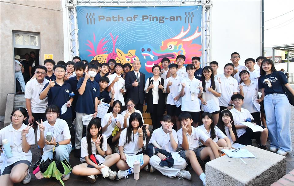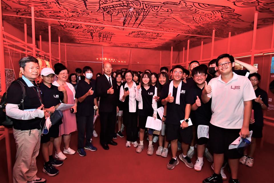 參觀過程中,巧遇不少校外教學的同學們及外地遊鄉客,向韓國瑜院長及王惠美縣長打招呼並要求合影,兩人都來者不拒,親切地大家留下快樂的合照。