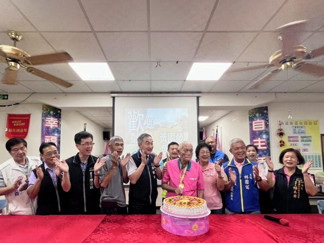 重陽節將至,台中市副市長黃國榮今(15)日代表市長盧秀燕前往神岡區探訪百歲長者劉國阿公,提前送上市府重陽敬老禮金1萬元及轉贈總統府及衛生福利部的金鎖片賀禮、滿百歲敬老狀,表達敬老心意。劉國阿公今日參加社區照顧關懷據點活動,展現摺紙絕活,黃副市長大讚阿公精湛手藝。