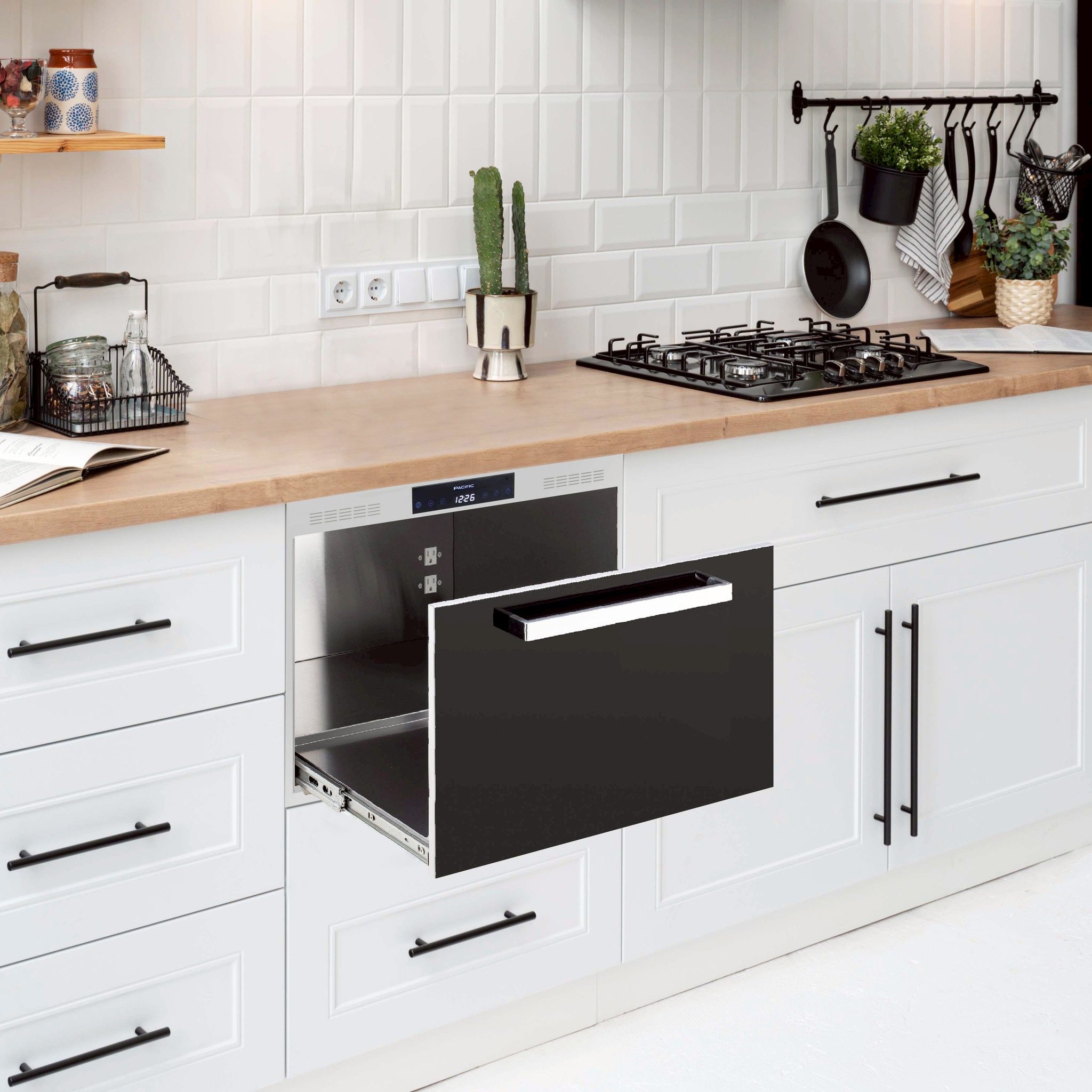 優選材質搭配安全設計 — 櫃內托盤採 SUS304 不鏽鋼,防腐耐熱;門板使用強化玻璃,能耐溫差與日常使用衝擊,對於材質質感的要求,櫃面、托盤、滑軌等皆選用耐用、易清潔、質感佳的材料。