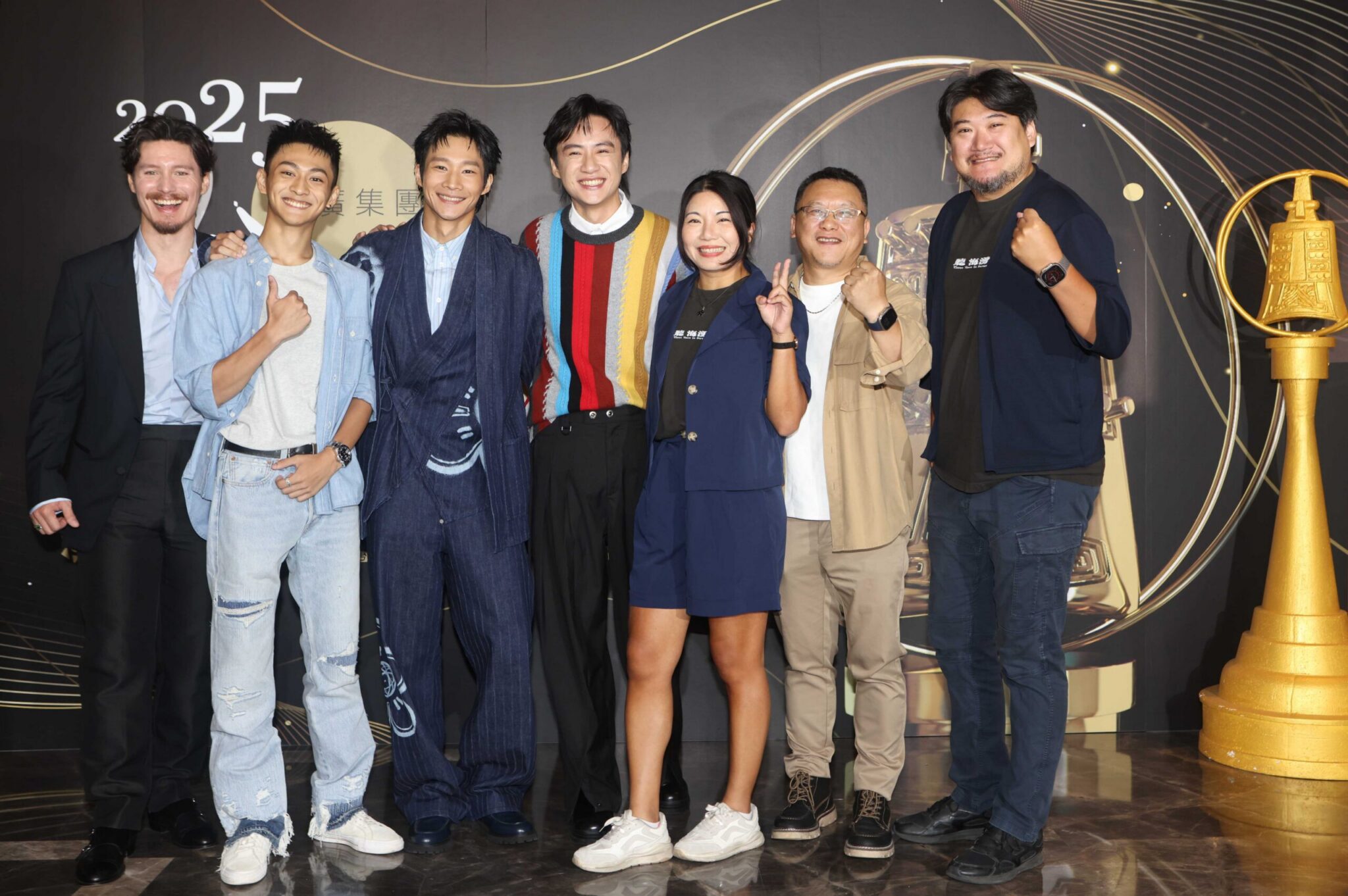 The Outlaw Doctor 化外之醫(左起)演員兼片尾曲音樂製作人POLO WL、黃大煒、蔡亘晏、楊一展、張鈞甯、導演詹淳皓、製作人湯昇榮 圖片提供:公視 圖片提供:公視