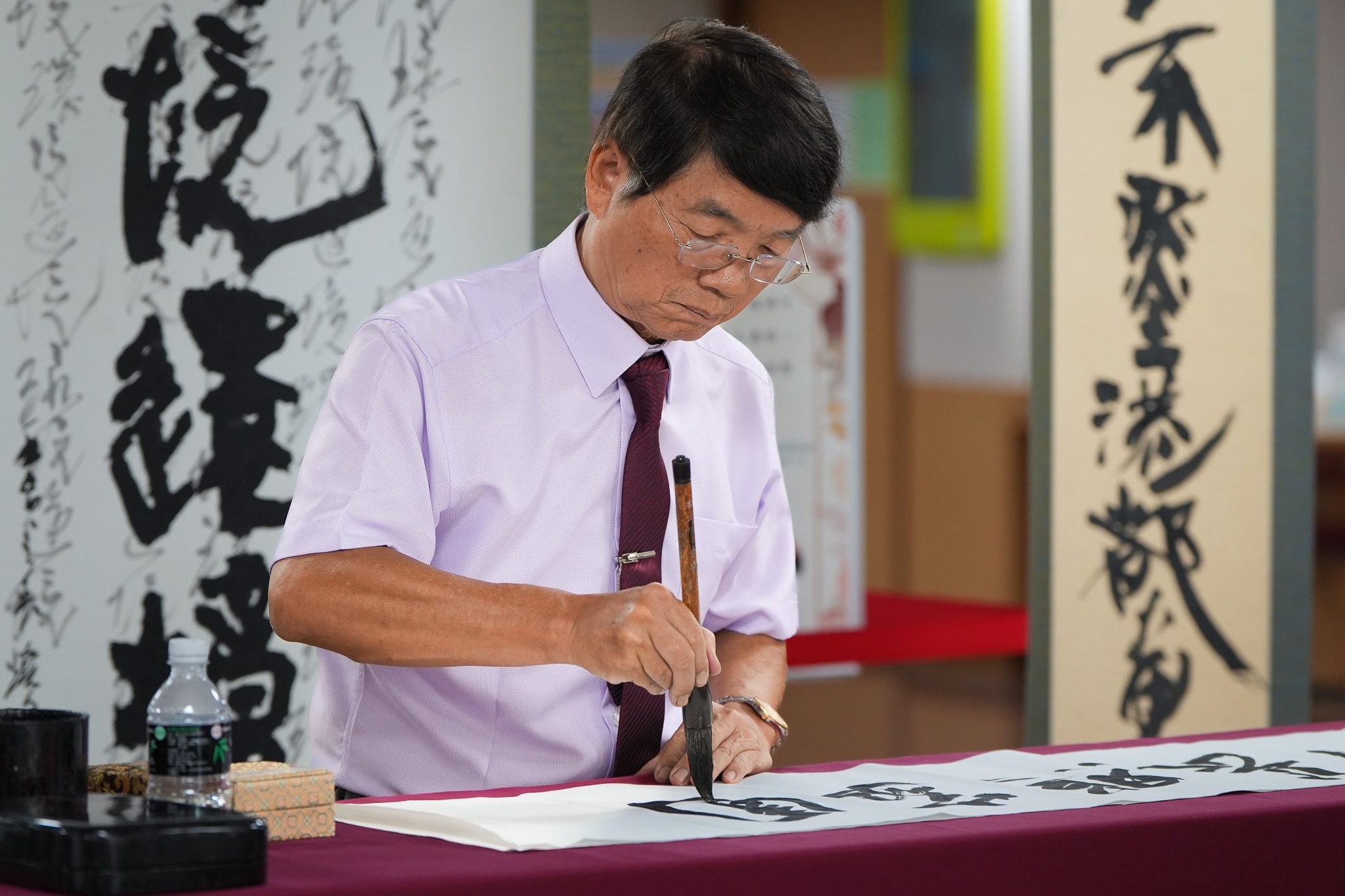 圖説:臺灣書法學會前理事長廖火煌,現場並安排書法現場揮毫。(記者王承綸/翻攝)