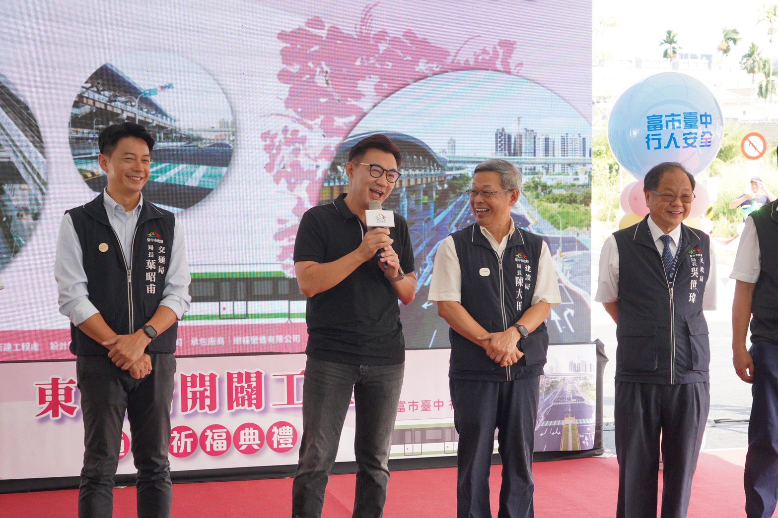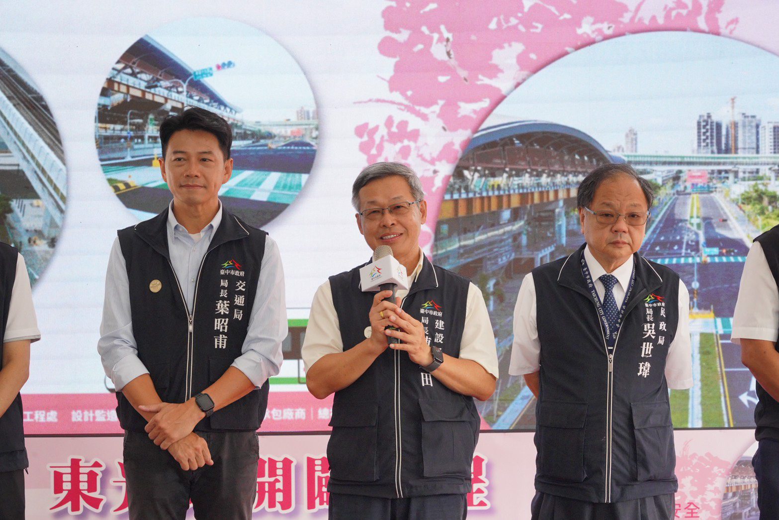 台中北屯區南北向主要幹道「東光路」首階段工程今(16)日正式通車!為紓解松竹路及東山路車流壅塞問題,市長盧秀燕積極推動「東光路計畫道路開闢工程」,在市府建設團隊努力下,首階段「松竹路一段至南興三路」及「東山路一段至東光路892巷」路段順利完工,總經費達新台幣23.1億元。今由建設局長陳大田與民政局長吳世瑋代表盧市長共同主持通車祈福典禮,象徵北屯交通建設再邁新里程,將有效改善松竹路與東山路一帶交通,並強化捷運與台鐵松竹車站聯外功能。