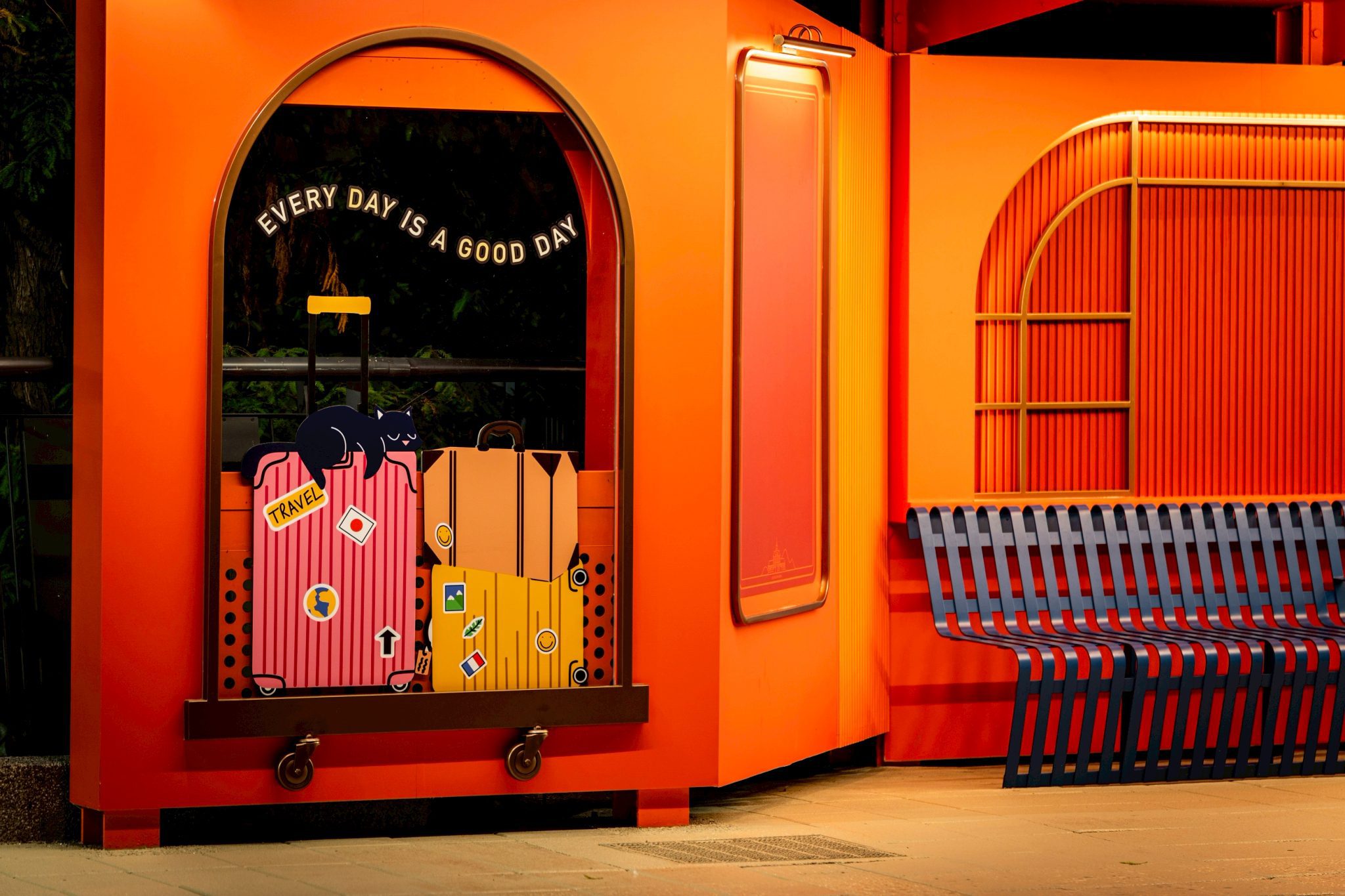 德安路口候車亭的改造起源於基隆市宋瑋莉議員於113年初辦理的會勘,深度感受地方民眾對於候車環境的期待與需求,促成潤隆建設對於候車亭的擴建與投入,市府並邀集設計團隊導入美學思維,對於施工結構及材質嚴格把關,歷經近一年的溝通與修改,從整體造型、動線配置到照明設計,層層打磨、精心調整,以「舒適、安全與美感並重」為原則。全新候車亭採用柔和光影與立體造型設計,橘色燈體在夜晚閃耀溫潤光芒,不僅為通勤民眾帶來明亮與安全感,也讓候車過程成為日常生活中一段愉悅的停留。