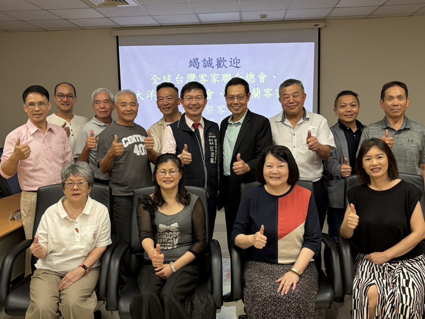 全球台灣客家聯合總會、大洋洲客屬總會、昆士蘭及雪梨客家會等海外客家社團代表一行,昨(16)日特別蒞臨台中市政府客家事務委員會拜會,由市府客委會主任委員江俊龍代表市長盧秀燕熱烈接待,雙方就客家文化推廣及國際交流進行意見交換,氣氛熱絡。
