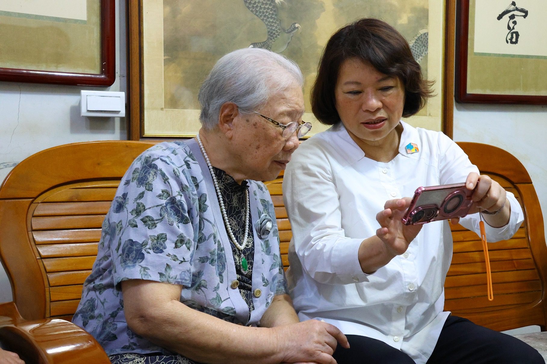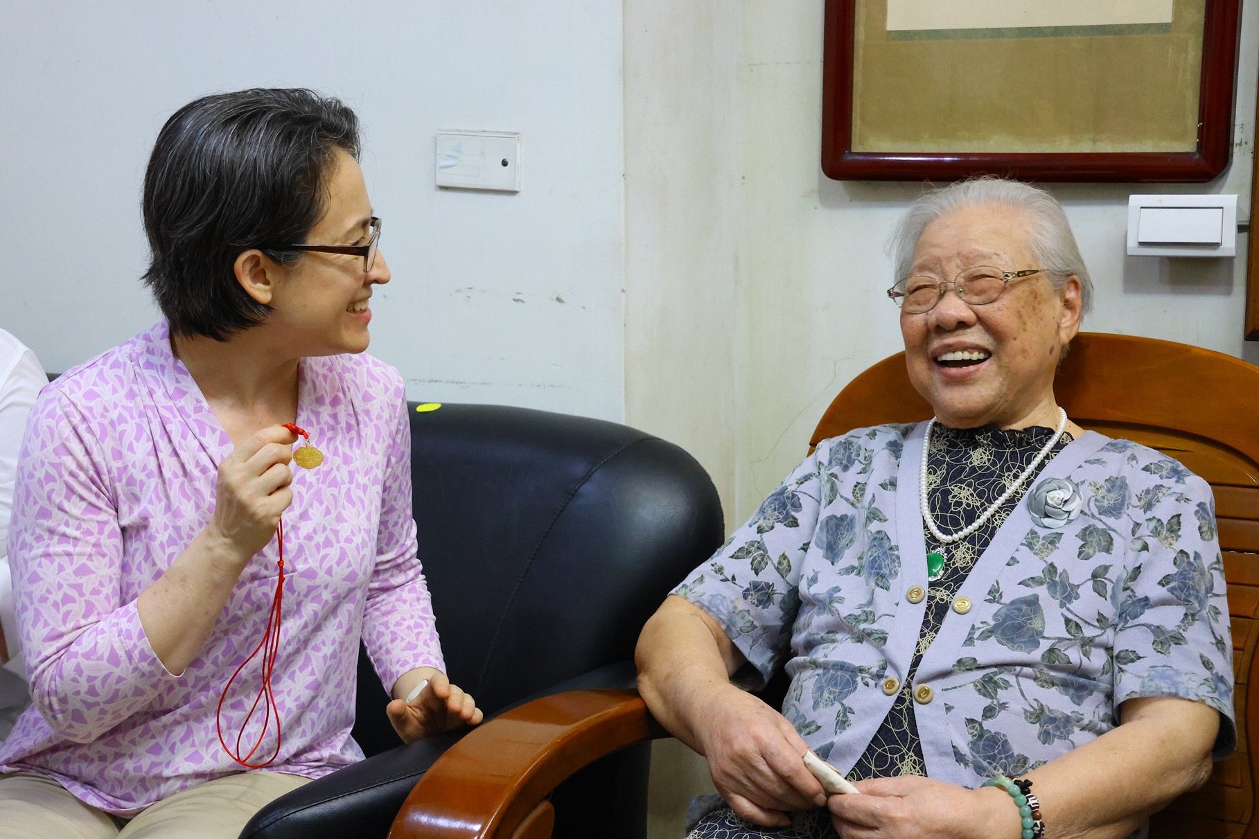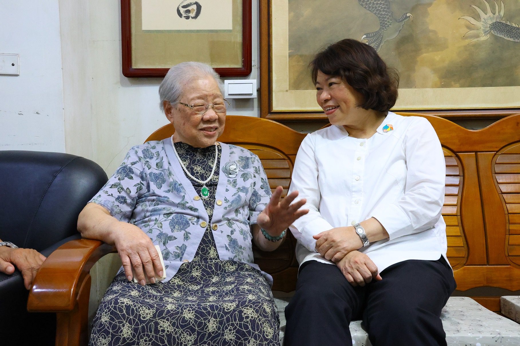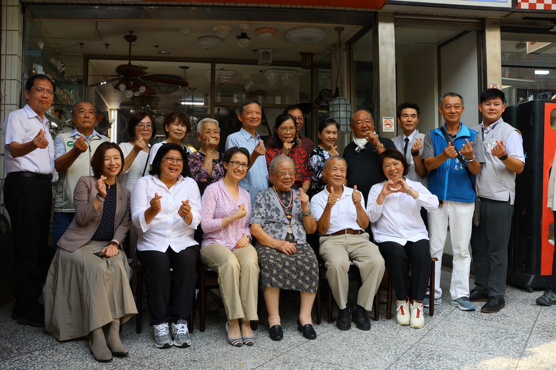 黃敏惠與今年年滿百歲的陳黃血女士相見歡,一見面就大讚阿嬤今天妝扮得「水噹噹」,陳黃血阿嬤聽見市長稱讚,不僅笑開懷更開心分享過去她曾賣過布料,身上的衣服正是親手縫製。細緻的衣料作工引得現場眾人驚訝。