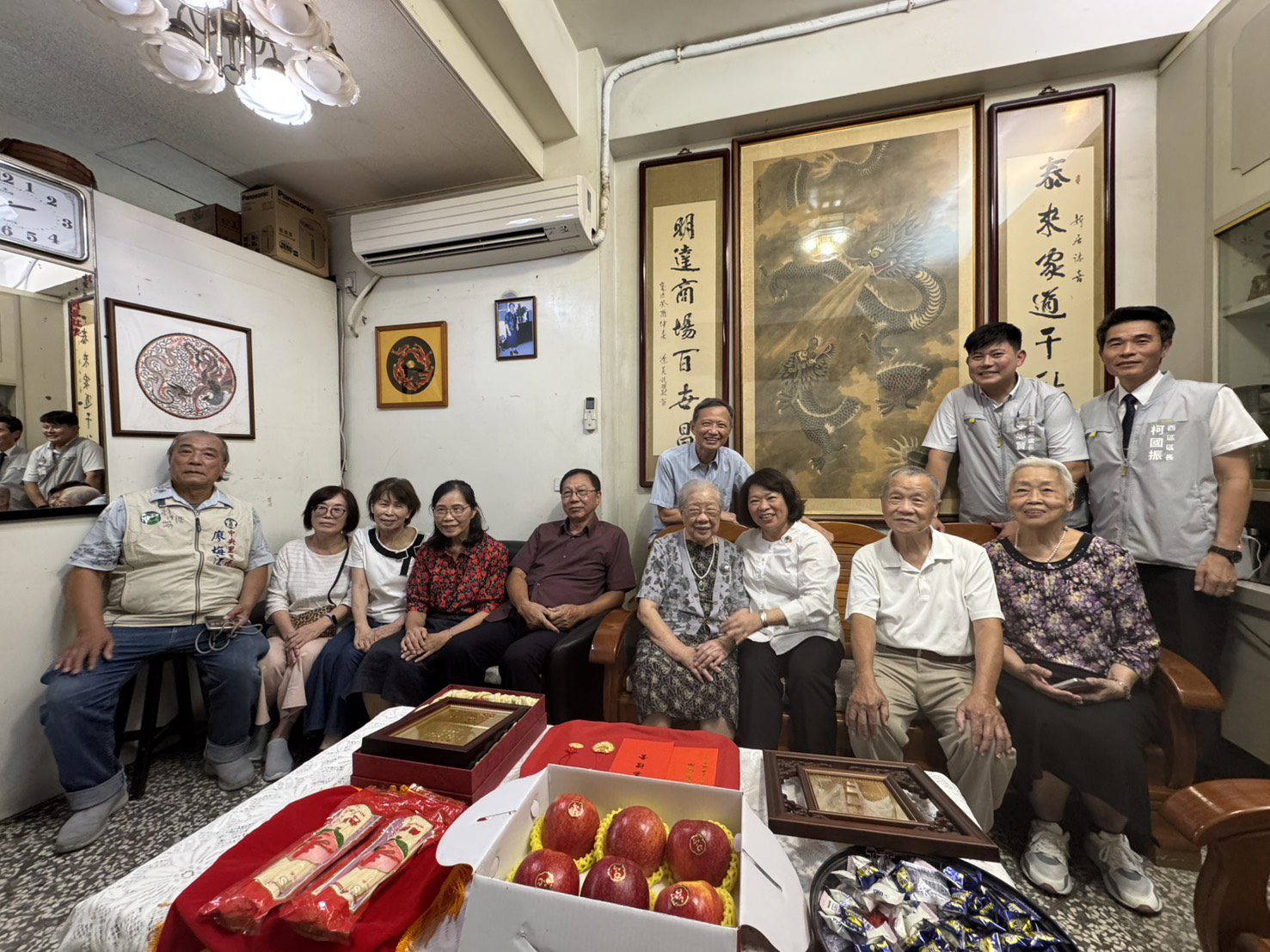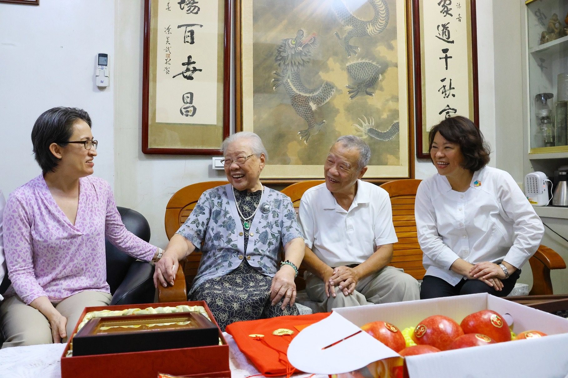 重陽節將至,嘉義市長黃敏惠今(18)日偕副總統蕭美琴共同前往拜訪百歲人瑞陳黃血女士,藉佳節傳達感謝長輩們拚搏一生為家為社會付出奉獻、敬老愛老的誠摯心意,黃敏惠市長致贈重陽禮金及重陽節賀匾、金牌、賀壽壽麵、代表平安的蘋果禮盒、營養禮金5,000元及重陽禮金1萬2,000元,蕭美琴副總統則送上衛福部金牌、總統府敬老狀等賀禮,祝福陳黃血女士佳節愉快、平安健康。