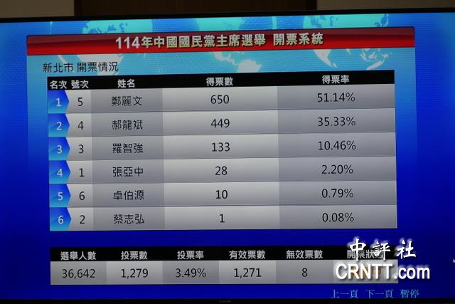 綜合報導/中國國民黨主席選舉開票中,在開票大約一小時後,依國民黨中央黨部的開票中心數據顯示,候選人鄭麗文以得票率約52%領先主要競爭者郝龍斌的33%,另一候選人羅智強則以約9%得票率居第三,鄭以一定的幅度穩定領先中。 國民黨主席選舉這次共有6人參選,分別是孫文學校總校長張亞中、前國大代表蔡志弘、國民黨立委羅智強、前台北市長郝龍斌、前立委鄭麗文、前彰化縣長卓伯源。 而目前全台各縣市都在開票中,郝龍斌僅有在台北市的開票微幅領先,其他各縣市幾乎都是鄭麗文領先,可以大概看出整個國民黨員投票的意向。 此次國民黨主席選舉,有投票權黨員約33萬人,由於投票踴躍,國民黨預估投票率有望破五成。
