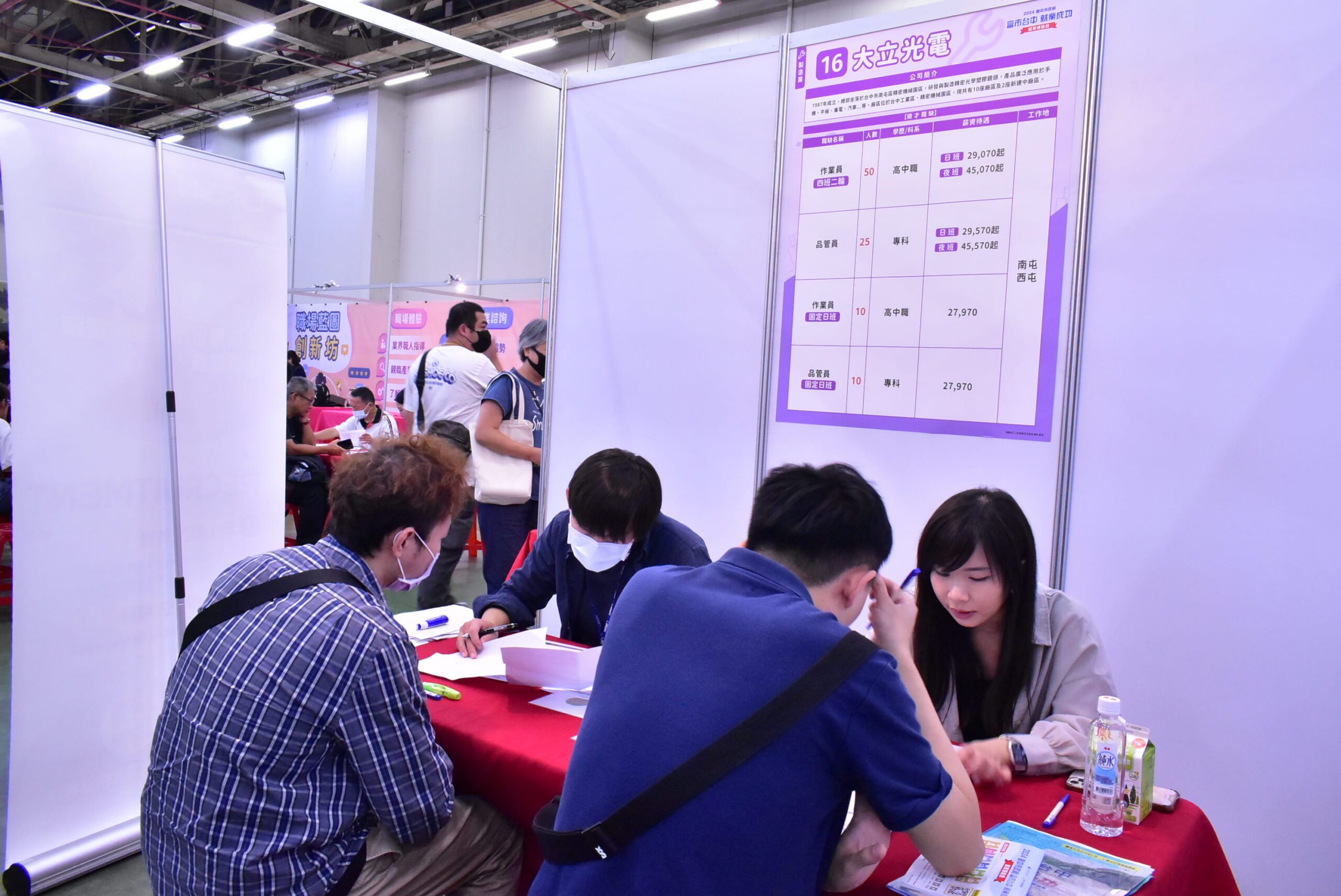 林局長進一步表示,此次就業博覽會邀集包含光學光電設備製造商「大立光」、美國記憶體大廠「美光」、電子氣體製造商「聯亞科技」,更有「鴻勁精密」、「科雅光電」等13家廠商首度加入就博會的生力軍,共計提供5,200個工作機會,其中參與婦女再就業計畫的西班牙賽麗石總代理商「興立富」釋出丈量工務專員職缺,薪資上看8萬元,而首度加入就博會的建材商「和嵩金屬」則釋出設計繪圖人員,薪資亦高達7萬元,此外勞工局也貼心開發了1,400個不限學經歷職缺,歡迎求職民眾把握機會踴躍面試!