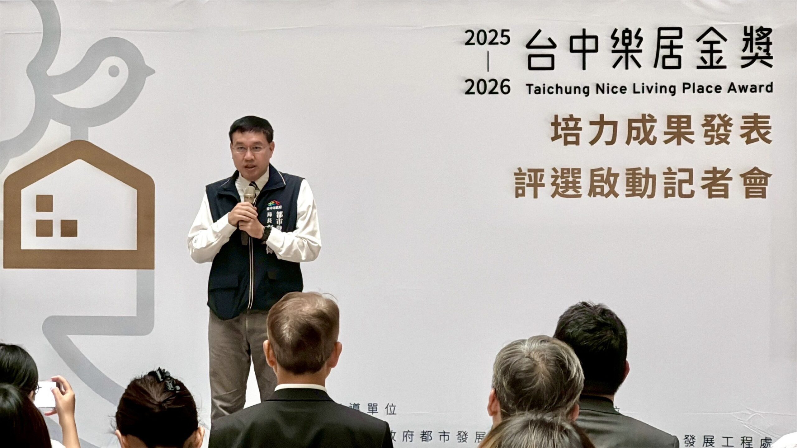 住宅處補充,「2026台中樂居金獎雙年獎」將於今年11月1日至12月31日開放社區報名。後續詳細報名資訊公佈於台中市政府住宅發展工程處網站。誠摯邀請市民參與,一同攜手實踐對美好生活的想像,為城市種下一顆樂居的種子,共築美好生活。
