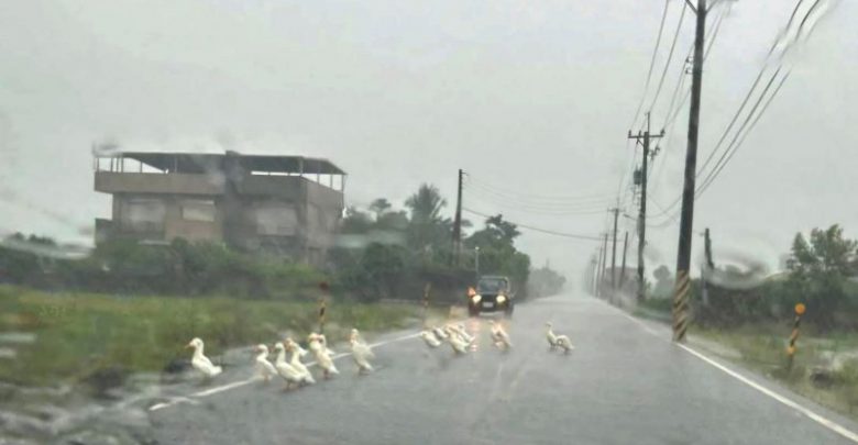還有民眾拍下畫面,並在臉書《宜蘭知識+》發文、分享畫面可見,宜蘭目前正下著大雨,五結補城路上出現大約二十多隻的鴨群佔據在道路上,有車輛按喇叭示警,但鴨群卻完全沒反應。原PO發文稱「誰家的鴨子跑出來了!連車子要過去鴨子也都不閃,按喇叭也沒反應」。