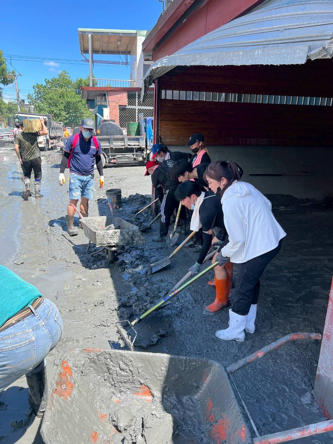 隱慈善會成員日前也到花蓮光復鄉,捐助物資以及清理泥砂。(新北市社會局提供)
