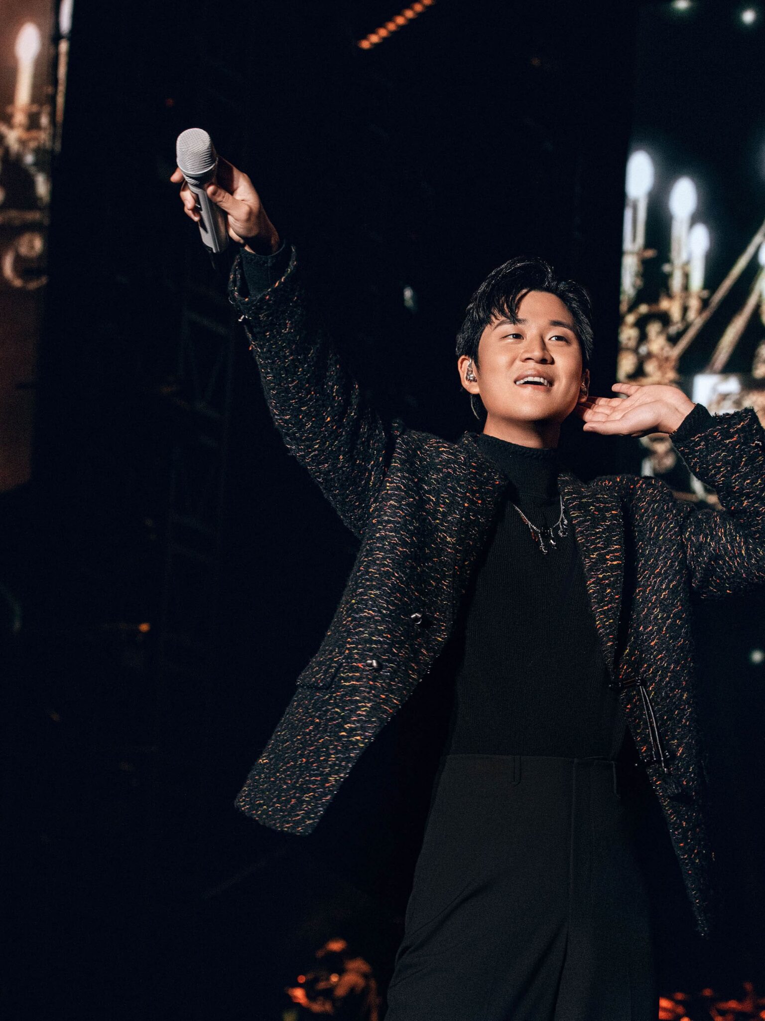 當周興哲摘下墨鏡那一刻,全場尖叫量瞬間爆表,「老公!老公!」此起彼落,Eric也笑場直呼:「小興星們,我今天帥嗎?」現場秒被撕裂般的尖叫吞沒,他感性補充:「今天是我人生中第一場體育場演唱會,也是Odyssey旅程第60場,走了三年,謝謝你們!」
