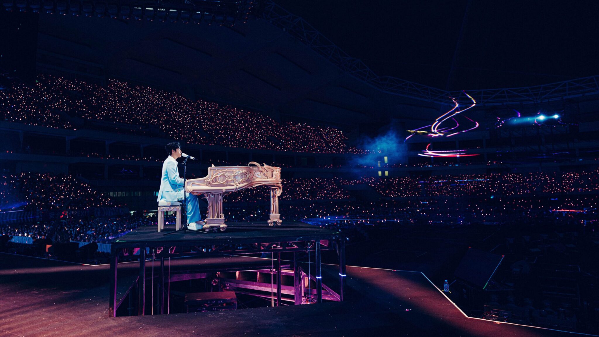 這是周興哲第二度返場上海,從前年首度唱進梅賽德斯奔馳中心,兩場爆滿,去年再返場,一樣兩場好事成雙,到今年一舉升級戶外體育場,晉升「三萬人規格」。事實上,周興哲日前才完成香港紅磡三場、台北小巨蛋三場返場演出,十天內橫掃台港六場紀錄,他感性說:「每個城市都是我旅程中的星星。」