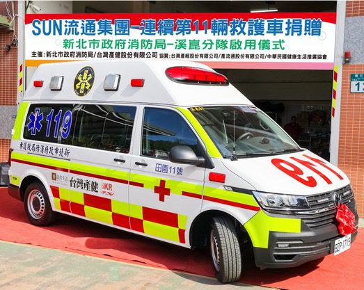 SUN流通集團秉持「創造更多人的幸福」為使命,深耕台灣 35 年以來,始終致力推廣「良食生活」理念,堅持提供天然、無汙染、無添加的安心食品與日本健康補助食品,守護每一個家庭的健康與幸福。2025 年,集團再度以實際行動回饋社會,由旗下子公司 台灣產健股份有限公司 代表,捐贈一輛高規格救護車給 新北市政府消防局第一救災救護大隊溪崑分隊,以行動支持第一線救護人員,讓愛在台灣持續流動。