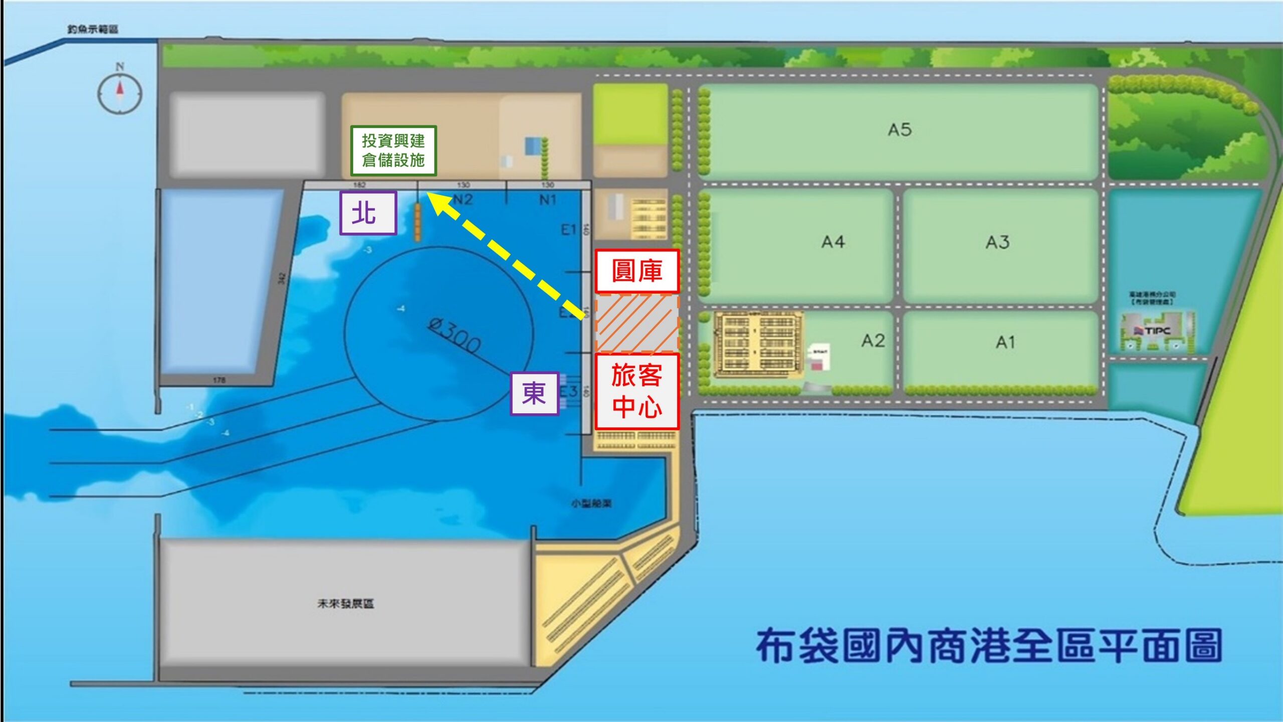 圖一、北碼頭區後線場地完成新建倉儲設施,東二碼頭將調整為客運服務區,招商引資,引進觀光休閒元素進駐。(港務公司提供)