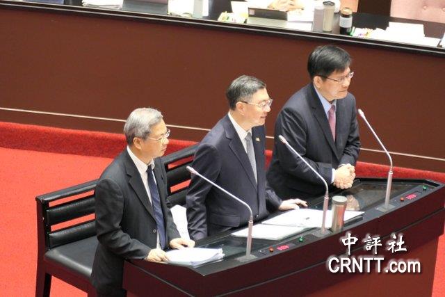 行政院長卓榮泰(中)、台經長龔明鑫(左)、台外長林佳龍答詢。(中評社)
