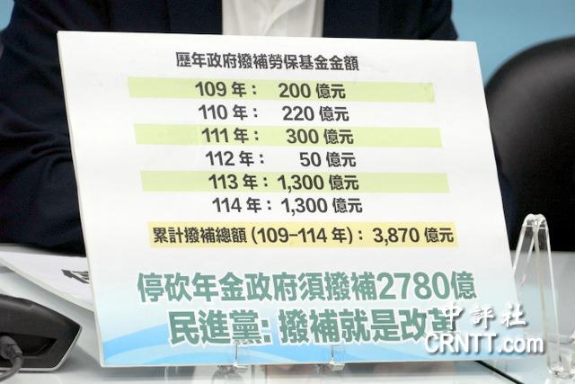 國民黨團表示,勞保從2020年開始撥補至今超過3千億元。(中評社)