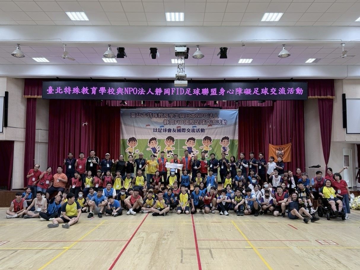 臺北市立臺北特殊教育學校與日本NPO法人靜岡FID足球聯盟舉辦日本足球交流活動,邀請與臺北市立士林高級商業職業學校服務群科學生共同參與。身心障礙學生齊聚一堂,無論是輪椅使用者或肢體協調能力不同的學生,都能在專業教練與志工協助下,盡情享受足球帶來的快樂與成就感。