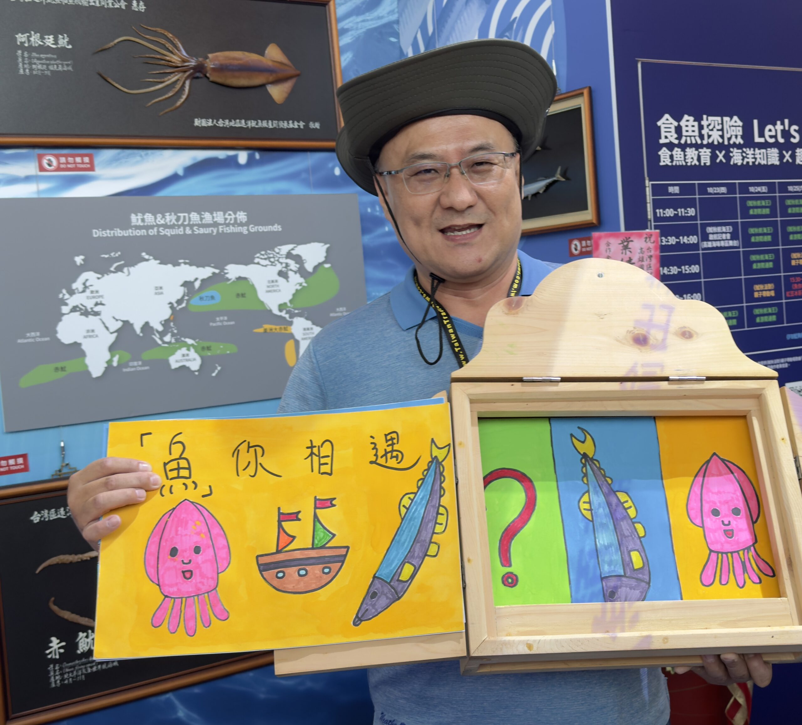 本次展出另一亮點為「食魚教育」,希望透過唱跳互動與故事分享,讓孩子們認識魷魚、秋刀魚的產季、營養價值與友善海洋的永續概念。精心企劃活動,有:「魷秋航海王桌遊闖關」從前鎮漁港啟航。