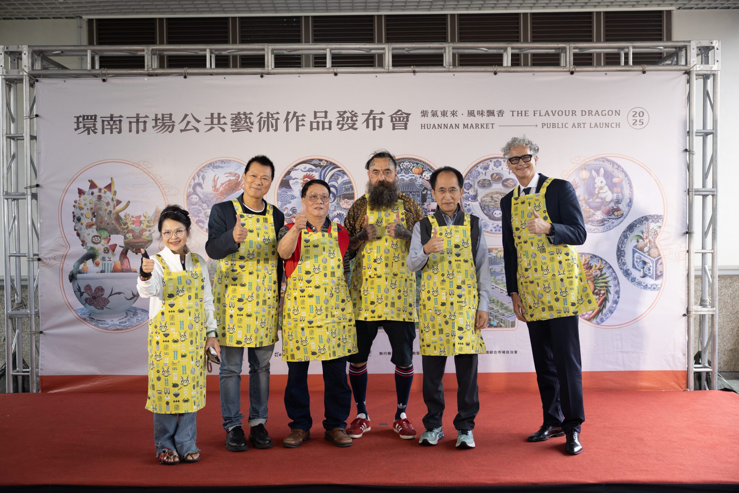 文化局說,環南市場是臺北食材供應的樞紐,承載大臺北市民的餐桌記憶。此次揭幕的《紫氣東來,風味飄香》不僅是公共藝術的成果,更是臺荷文化交流與社區共創的展現。文化局蔡詩萍局長特別感謝藝術家阿爾諾·科寧 Arno Coenen 與臺灣工藝師的跨國合作,將作品與剪黏、類交趾陶、馬賽克與瓷器彩繪等技藝融合在當代語境下煥發新生。