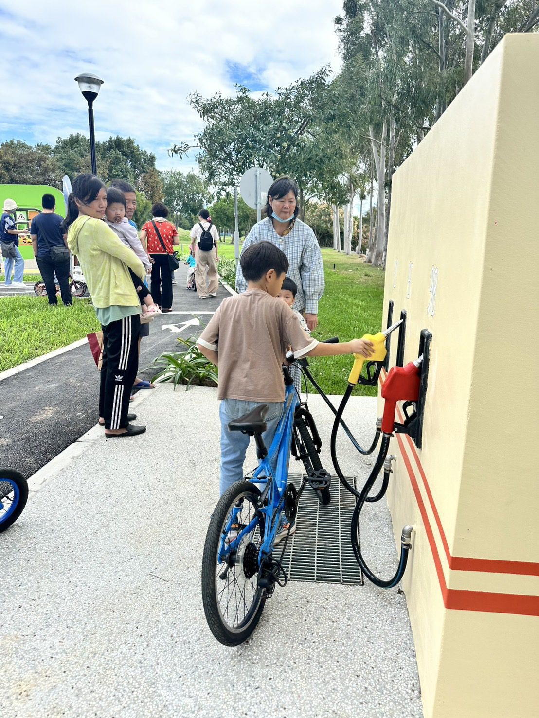 秋日的后里環保公園迎來新亮點,「孩籽世界共融遊戲場」已於9月完工,昨(23)日開放使用,吸引親子家庭前來體驗,成為假日出遊的新去處。這次投入1,500萬元,秉持市長盧秀燕「讓城市幸福蛻變」理念,以「環保」、「生態」與「交通學習」為核心打造,設置攀爬遊戲塔、彈跳床、共融翹翹板、迷你環狀道路及交通學習區等設施,兼顧安全、趣味與教育功能,為不同年齡與能力的孩子創造理想的遊戲天地。