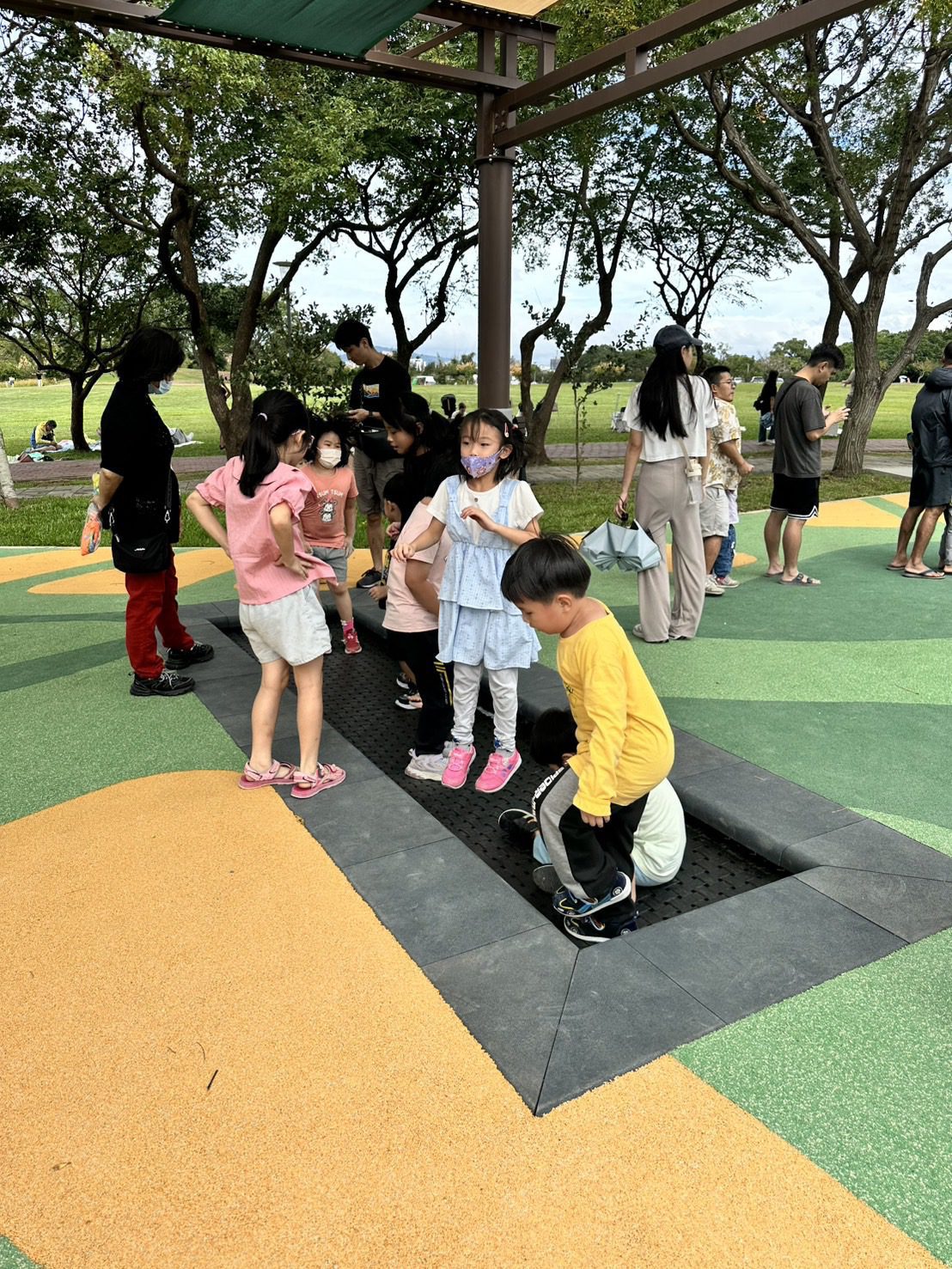 陳局長指出,遊戲場兼顧安全與挑戰性,色彩、造型與材質融入自然元素,讓孩子在遊戲中探索與互動,家長也能安心陪伴。遊戲場鄰近落羽松林與波斯菊花海,四季皆有景觀可賞,成為自然教室與遊憩天堂。