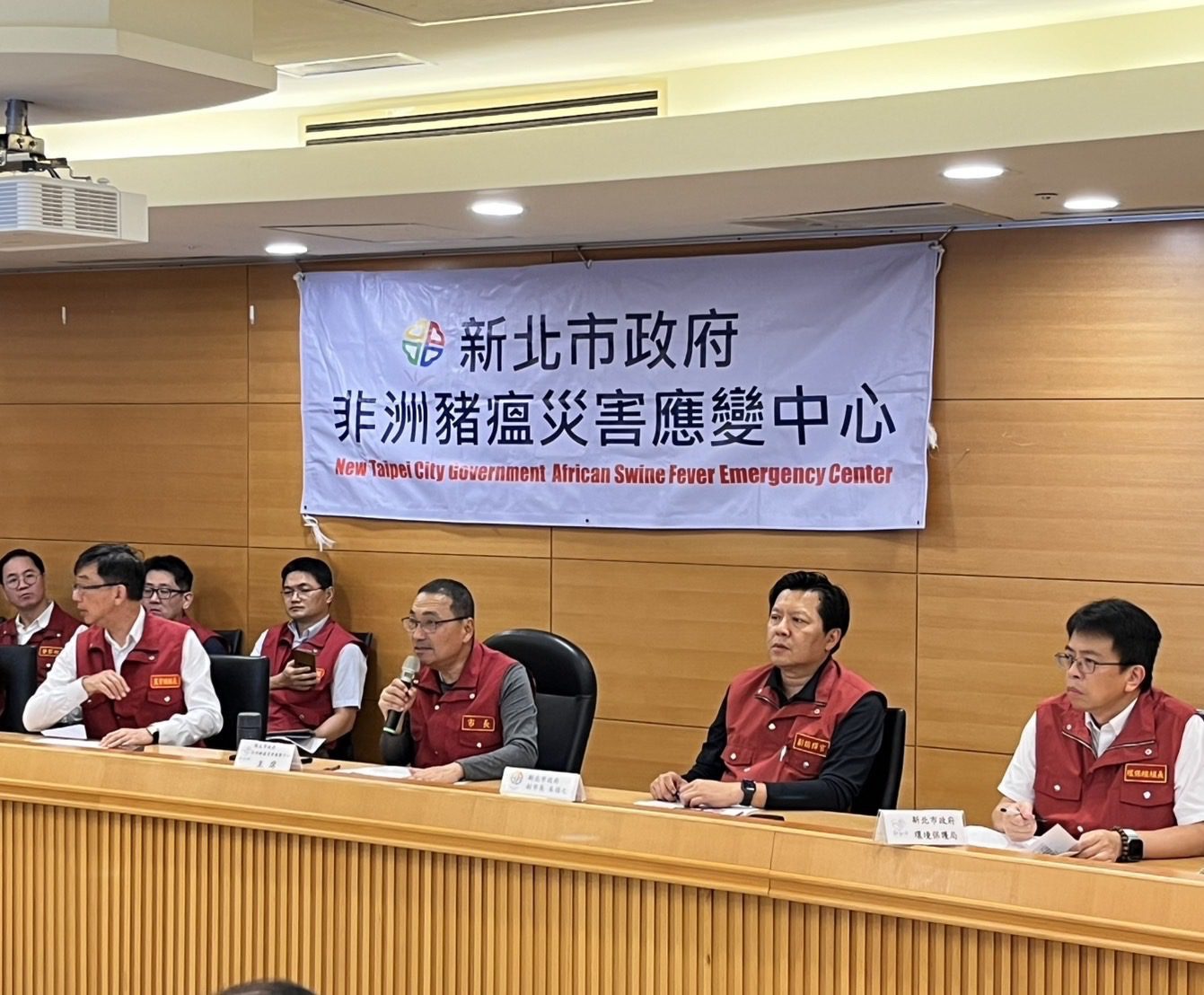 因應台中市疑似非洲豬瘟疫情,中央宣布全國五天禁宰禁運、全面禁止使用廚餘養豬。新北市政府非洲豬瘟防疫緊急應變中心2次召開,由市長侯友宜親自主持防疫會議,召集農業局、動保處、衛生局、環保局、警察局、教育局等十五個局處跨域動員,全面防堵疫情進入本市養豬場域及肉品市場,務必「不讓病毒跨過新北防線」。