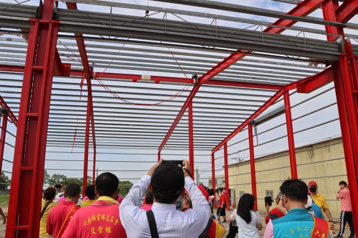 國家重要民俗「雲林六房媽過爐」今(25)日上午舉行115-116年五間厝股紅壇新建工程上樑典禮,由縣長張麗善、文資局主秘張祐創、文化觀光處長陳璧君、立委張嘉郡、許宇甄、丁學忠、劉建國、縣議員王秋足、蔡東富、簡慈坊、張庭綺、斗南鎮長沈暉勛、土庫鎮長陳特凱、虎尾鎮長林嘉弘與大埤鄉長林森寶等多位地方民代、中華民國六房媽會理事長徐萬成及執事人員、115-116值年爐主顏徐素芬等人共同擔任扶樑官,並邀請象徵吉祥圓滿的108名六房媽志工團體領袖等人擔任護樑官,上香祝禱共祈工程平安順遂,吸引上千名信眾到場觀禮,場面盛大熱鬧。