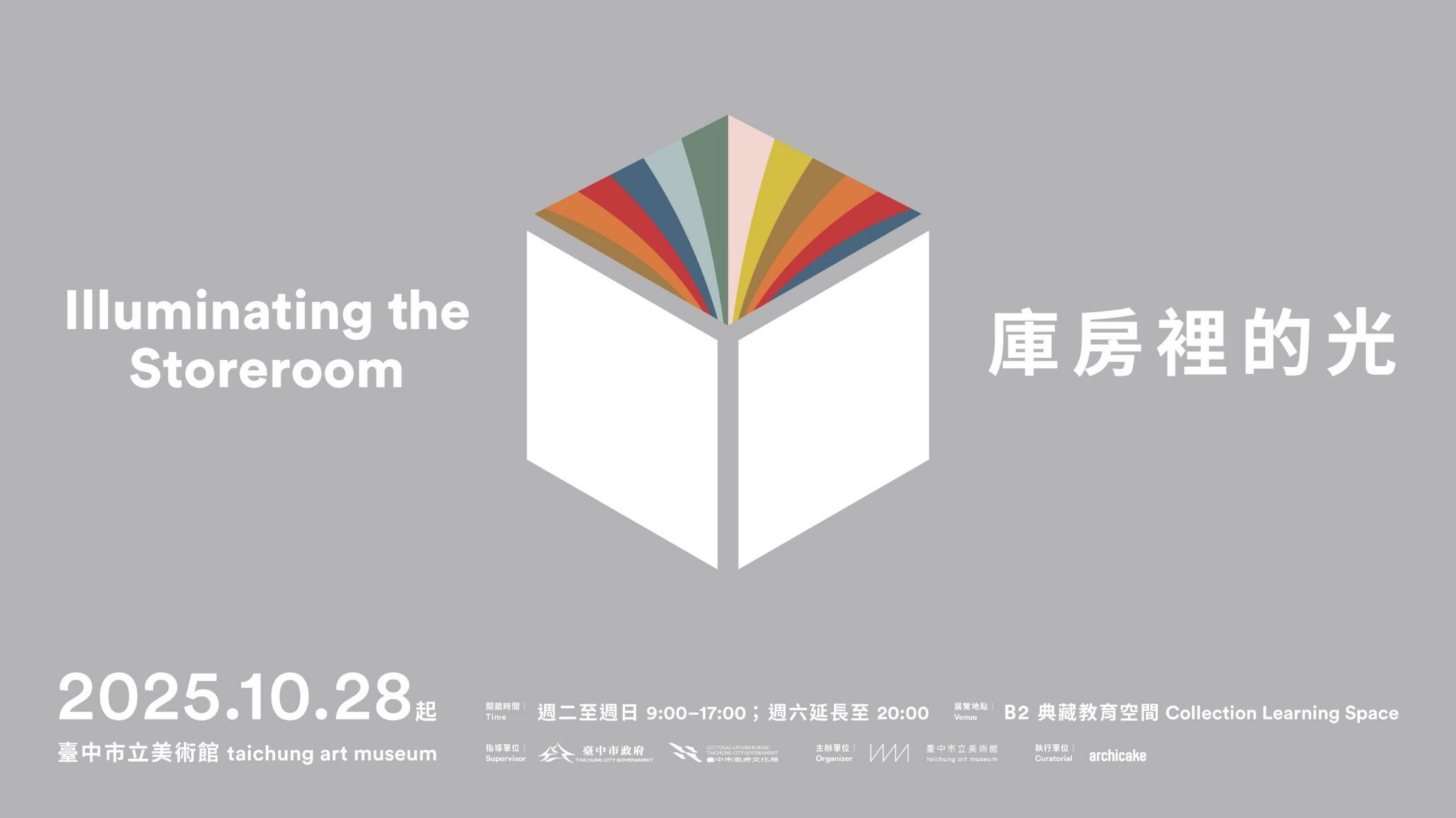 典藏教育展「庫房裡的光」以綠美圖的建築特色「可視性庫房」為概念延伸設計,打破過往封閉的典藏印象,以三面連結庫房空間的落地窗讓觀眾得以窺見藝術保存的幕後日常。展覽以「光」為線索,象徵庫房的開啟,同時光也是創作的靈感,以及藏品入庫前環境檢測與作品檢視的重要工具,結合庫房展示與寓教於樂的互動體驗,揭示藝術作品從誕生、典藏到保存的生命歷程,引導觀眾認識中美館典藏品及典藏保存實務工作的豐富面貌。