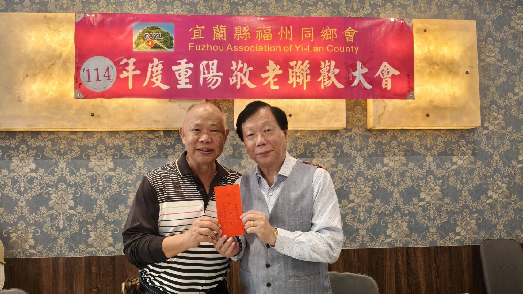 為慶祝一年一度重陽節,宜蘭縣福州同鄉會理事長林孝武,於重陽節前夕,25日在宜蘭市米樂餐廳舉辦「114年度重陽敬老聯歡餐會」,並對65歲以上會員親發象徵「富貴安康」的敬老禮金,長官、民代及貴寶冠蓋雲集,場面非常熱鬧,前縣議員陳金麟以雙重身份應邀參加,倍感榮焉。