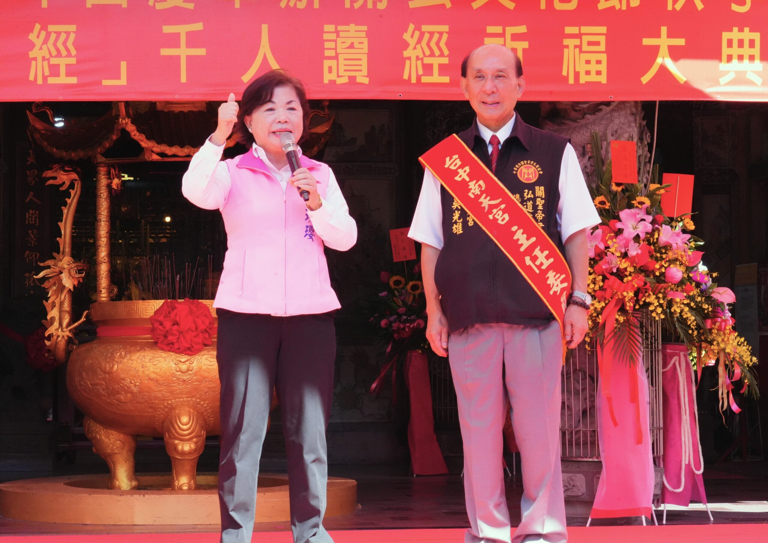 台中南天宮主委吳光雄指出,在盧市長的帶領之下,感謝市府團隊對市政建設、民生福祉與教育發展的貢獻,展現台中城市的團結與溫暖。他並提到,《桃園明聖經》倡導的宗教廉潔與倫理道德主要體現在忠義、仁愛、孝道、禮讓和勤奮等傳統美德上,提醒民眾以五倫五常為做人準則,守禮義廉恥之道,發揚關帝文化中忠義仁勇的精神,讓家庭與社會都能和諧共榮,並祈願在關帝爺庇佑下,大家都能福慧增長、家庭平安、事業順利、財源廣進。