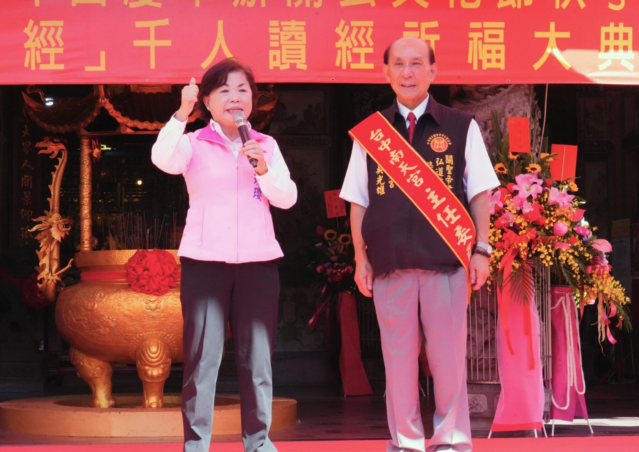 今日活動,立委楊瓊瓔、市議員陳雅惠、林霈涵、民政局長吳世瑋、東區區長吳忠聖、南區區長李美麗、北屯區副區長徐宏銘、太平區公所主秘李愛國、東區區公所主秘李錫祺、樂業國小校長鄭麗娟、仁愛國小校長施瑤娟、力行國小校長聶台璋、新光國小校長黃圓媛、建平國小校長彭怡文、進德國小校長莊慶鑫、太平國小校長曾娉妍、大智國小校長楊雅娟、東峰國中校長曾瓊華、育英國中校長趙育興、新平國小校長李秀櫻、北屯國小校長陳怡婷、車籠埔國小校長王財隱、富台里長石國勲、南天宮主委吳光雄等人均出席,立委羅廷瑋、市議員李中、鄭功進、江肇國也派員致意。