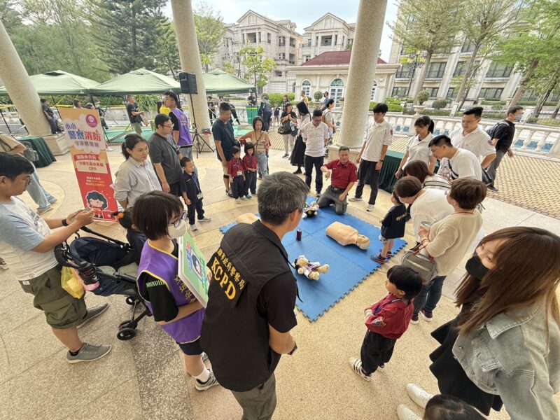 消防體驗區同樣熱鬧非凡,共有「守護生命小英雄CPR」、「火線救援水線射擊」及「煙霧迷蹤體驗」三大關卡,讓學童親身學習CPR、AED的操作要領與濃煙密布的火場逃生技巧;在消防人員指導下體驗滅火、救援的臨場感,學習危難中冷靜應對。而壓軸登場的消防搜救犬表演更成為全場焦點,搜救犬靈活敏捷的身手贏得滿場掌聲,讓大小朋友驚呼連連。