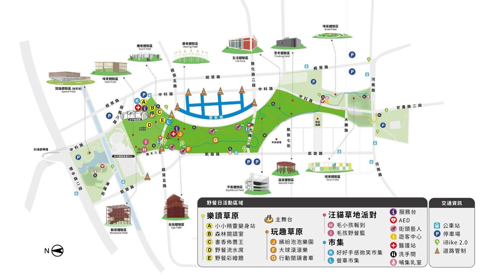 陳局長指出,今年規劃三大主題區,展現中央公園的多元魅力,一是設有森林閱讀室與大型書架的「樂讀草原區」,並舉辦二手書交換,讓書自由旅行。另有「野餐流水席」,將飛機跑道舊址化身孩童粉筆創作天地,畫出繽紛野餐饗宴;二為「汪喵草地派對區」打造毛孩拍照區與寵物造型體驗,並開設「毛孩野餐籃:鮮食手作體驗」,由講師指導製作健康點心,讓毛小孩也能一起野餐;三是除行動閱讀書車外,還有泡泡秀、大球滾滾樂等親子互動遊戲,營造歡笑滿滿的快樂氛圍的「玩趣草原區」。