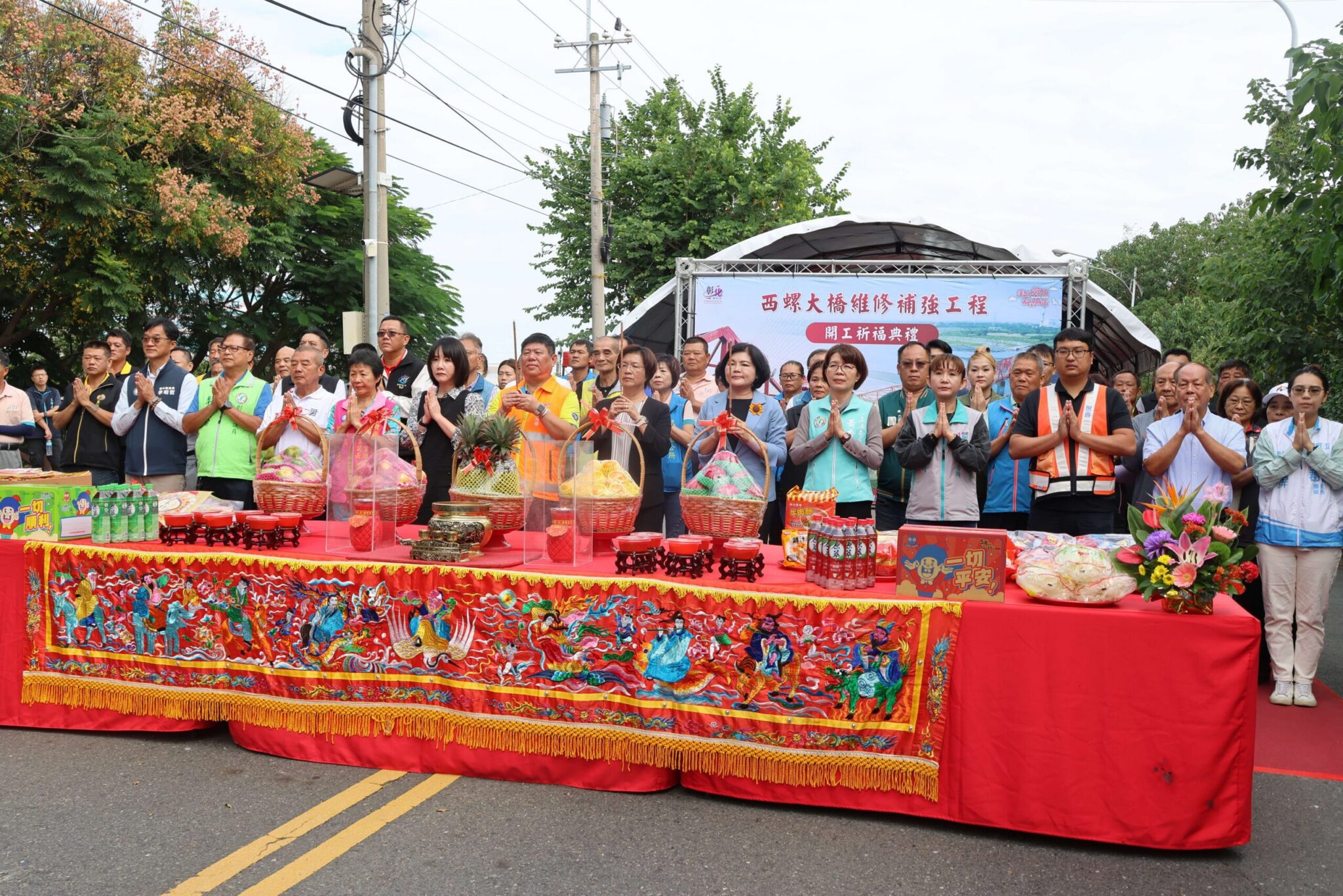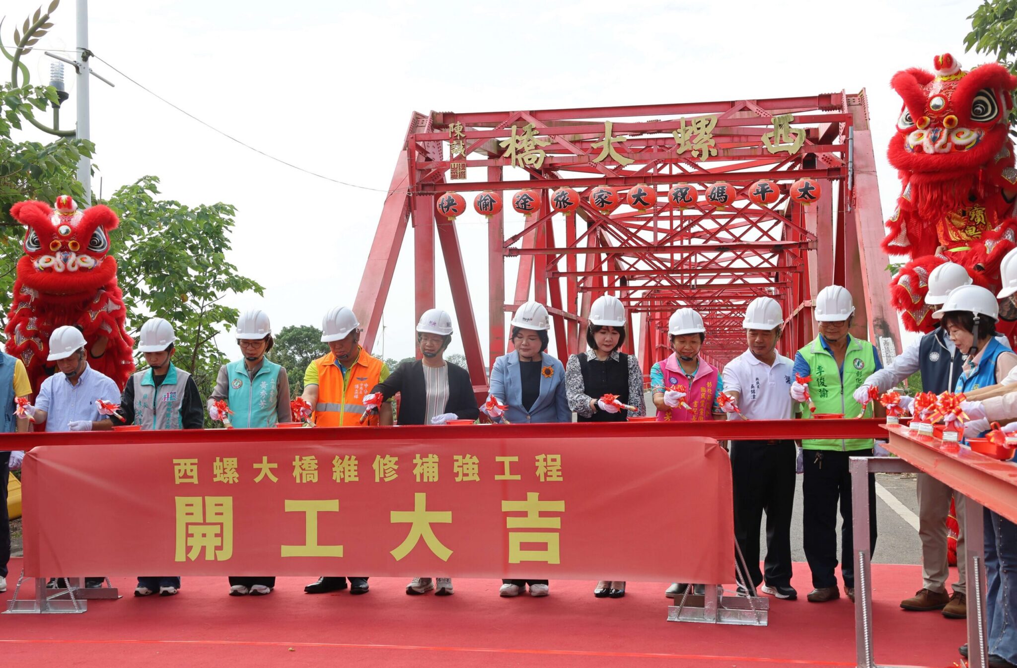 為祈求「西螺大橋維修補強工程」施工安全與圓滿順利,持續提升中彰雲地區的交通韌性並保存珍貴歷史資產,今(27)日上午於西螺大橋彰化端舉行盛大的開工祈福典禮,雲林縣長張麗善、彰化縣長王惠美、交通部公路局中區分局長傅立祥、多位民意代表及地方仕紳共同見證開工時刻,象徵中央與地方跨縣市攜手合作,為這座跨越濁水溪的重要橋梁邁向下一個嶄新里程碑。